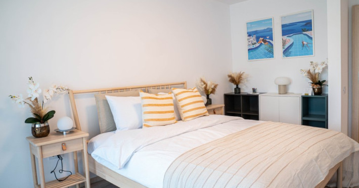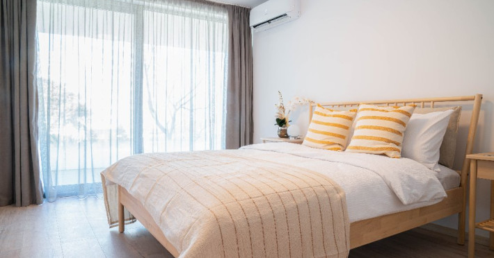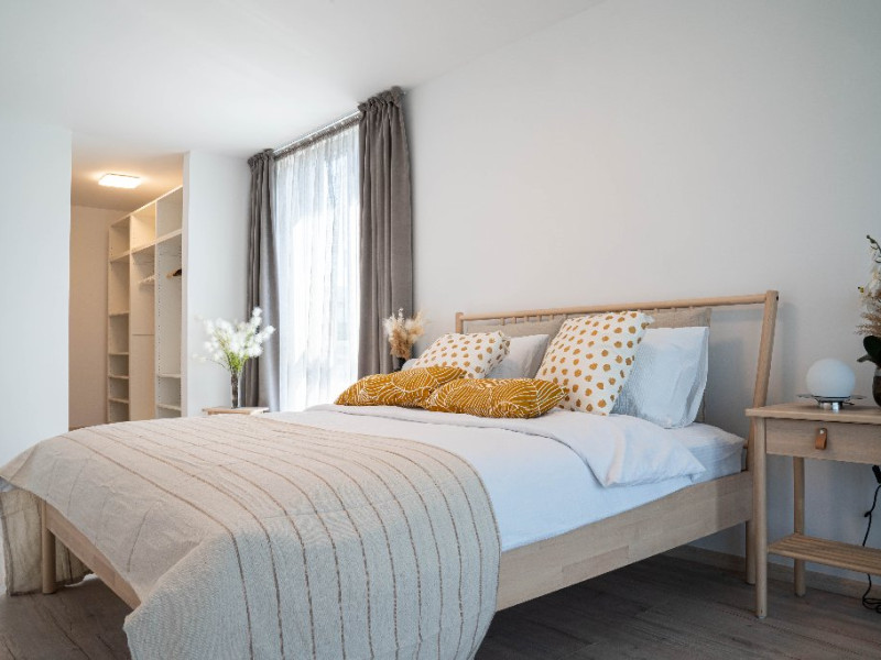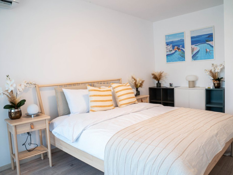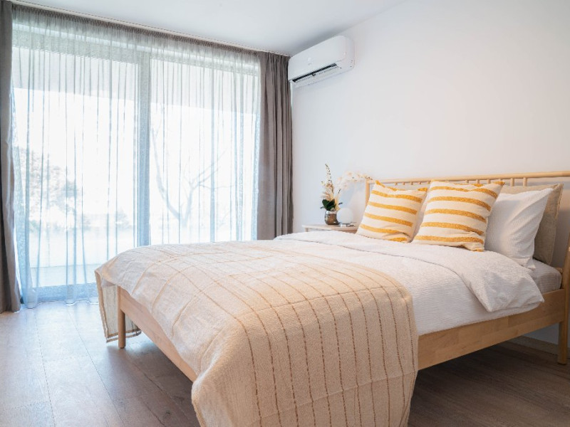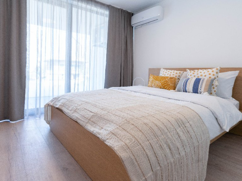 Apartament 3 camere  - este format din living cu canapea extensibila (140200), bucatarie utilata, 2dormitoare cu pat matrimonial (160200), 2 bai cu dus, balcon. Are 1 loc deparcare asigurat. Suprafata: 90 mp + balcon generos de 20 mp.