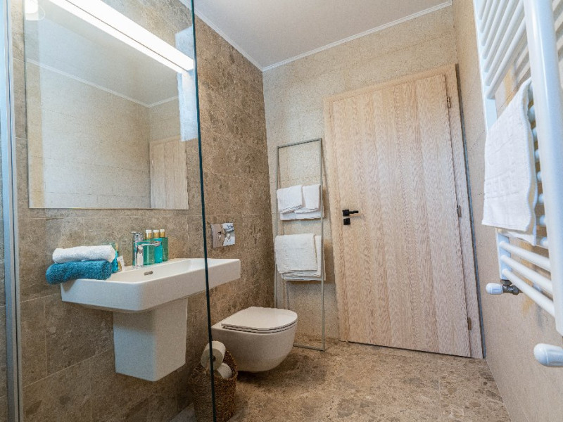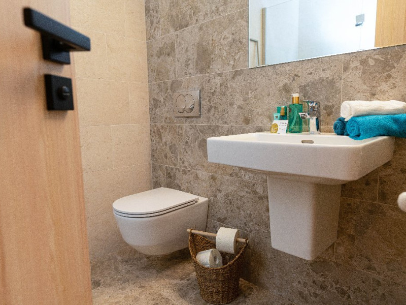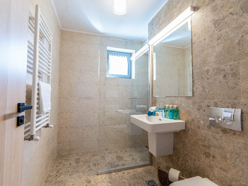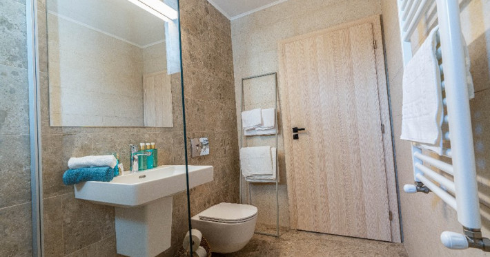 Apartament 2camere Superior - este mai spatios si are 2 bai. Este format din living cucanapea extensibila (140200), bucatarie utilata, dormitor cu pat matrimonial(160200), 2 bai cu dus, balcon si terasa cu mobilier. Are 1 loc de parcareasigurat. Suprafata: 63 mp + balcon 5 mp si terasa 15 mp.