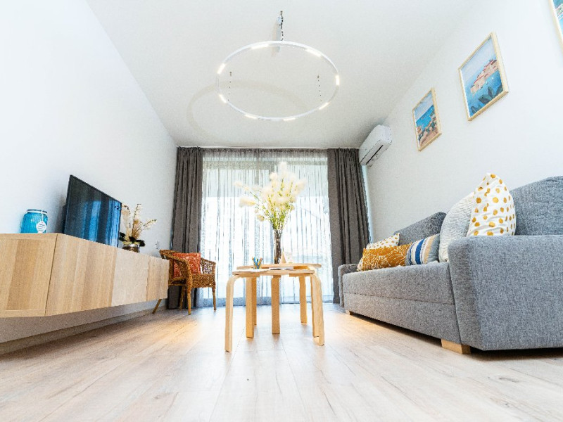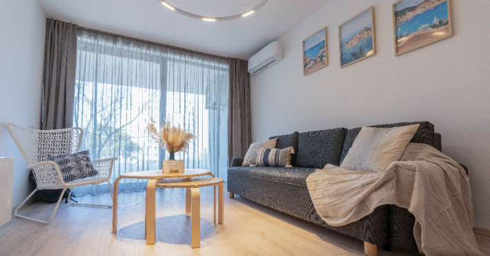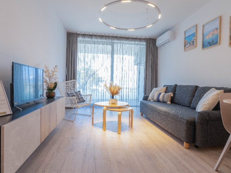 Apartament 2 camere Standard  - este format din living cu canapea extensibila (140200), bucatarie utilata,dormitor cu pat matrimonial (160200), baie cu dus, balcon/terasa cu mobilier (repartizarea se face la receptie). Are 1 loc de parcare asigurat. Suprafata:55 mp + balcon generos de 11 mp/terasa 20 mp. Capacitatea maxima este de 4adulti si 1 copil sub 3 ani.