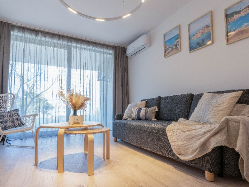Studio Standard  - esteformat dintr-un spatiu deschis cu bucatarie utilata, pat matrimonial (160200),baie cu dus, terasa. Are 1 loc de parcare asigurat. Suprafata: 39 mp + terasa20 mp cu mobilier.