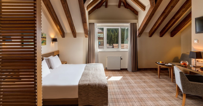 Picturesquely located at the foot of the Postavarul Mountain, next to ski slopes and amid a pine forest, Ana Hotels Sport Poiana Brasov offers accommodations in Poiana Brasov resort. Ana Hotels Sport Poiana Brasov provides cozy and pleasant rooms with superb views and LCD TVs. Free WiFi is available in all public areas. In the SPA Center you can enjoy a spacious swimming pool of 472 ft², with a uniform depth of 5.2 ft and a temperature of 27-30° C all year round, indoor jacuzzi, outdoor hot tub, dry or wet sauna, Laconium with a maximum temperature of 50°C, ice fountain, indoor seating area and bar, as well as an outdoor terrace with sun loungers or a fitness room. The hotels restaurant serves Romanian, Hungarian and international dishes and features a terrace with views of the nearby ski slopes. Guests can venture out and enjoy skiing and snowboarding on the slopes in the winter, while in the summertime play tennis or go hiking in the forest, breathing the fresh mountain air. This property offers free ski storage for its guests, and a ski school is available for an extra charge. The medieval city of Brasov is only 9.3 mi away and Bran Castle, said to be the castle of Count Dracula, is only 16 mi from Poiana.WiFi is available in all areas and is free of charge. No parking available. Pets are not allowed. Children of all ages are allowed. Children 3 and under stay for free when using an available crib. Children 12 and under stay for 123 lei per person, per night when using an existing bed. People 4 and up stay for 141 lei per person, per night when using an available extra bed. Any type of extra bed or crib is upon request and needs to be confirmed by management. Additional fees are not calculated automatically in the total cost and will have to be paid for separately during your stay.Checkin Time: 16:00Checkout End Time: 12:00Hotel important information: In response to the coronavirus (COVID-19), additional safety and sanitation measures are in effect at this property. Food and beverage services at this property may be limited or unavailable due to the coronavirus (COVID-19). As a result of the coronavirus (COVID-19), this property has temporarily suspended its shuttle services. Due to the coronavirus (COVID-19), this property is taking steps to protect the safety of guests and staff. Certain services and amenities may be reduced or unavailable as a result. Please note that only some room types can accommodate children in addition to the maximum room occupancy, at an extra cost. For more information, please consult the Children and extra beds policies. Please note that all the payments will be done in RON (lei) at exchange rate set by the Romanian National Bank. Please note that there might be a difference in the room rate due to currency exchange rates. Please note that Ana Hotels Sport Poiana Brasov requires your details in order to issue an invoice for your stay. The property will contact you after booking.