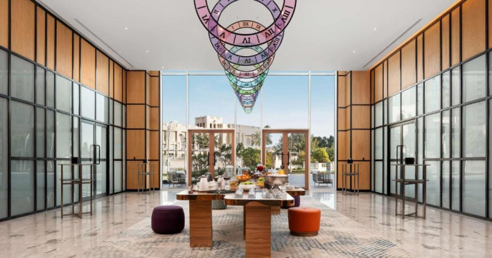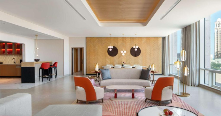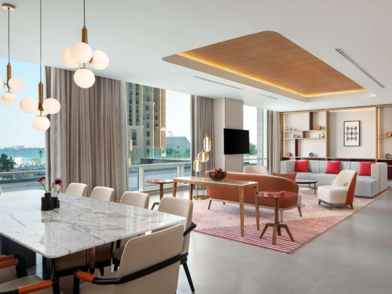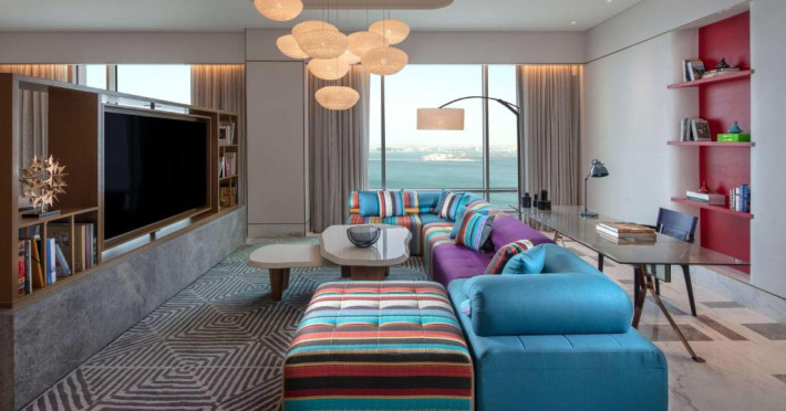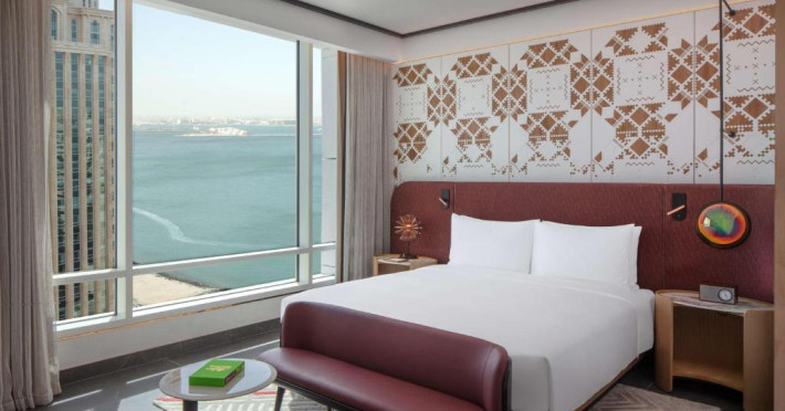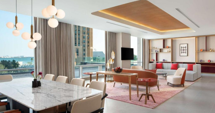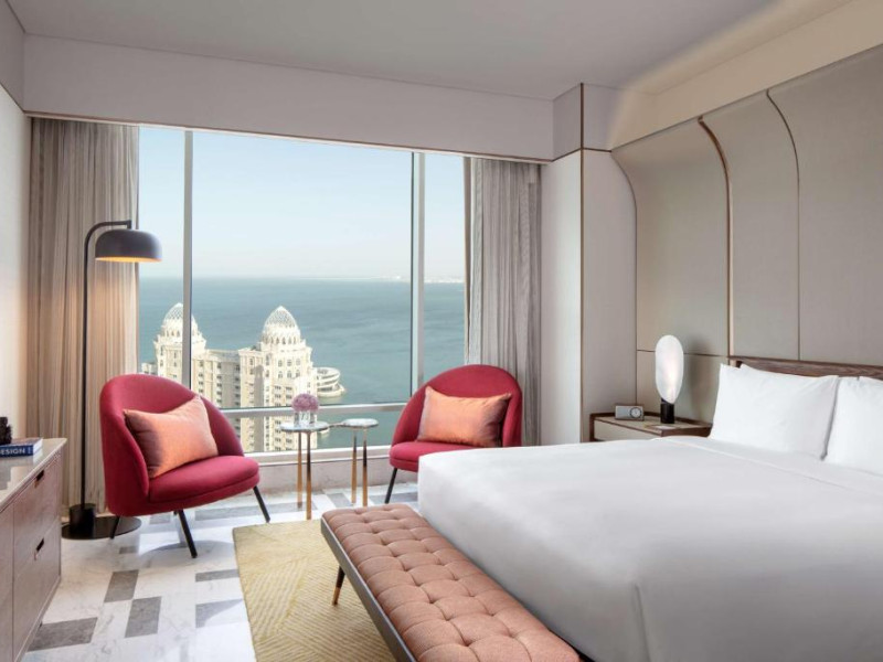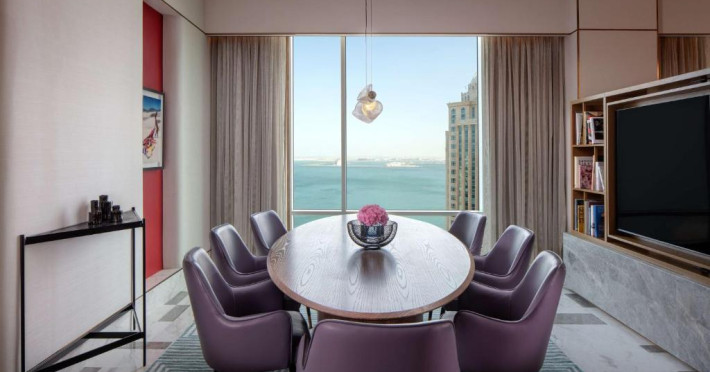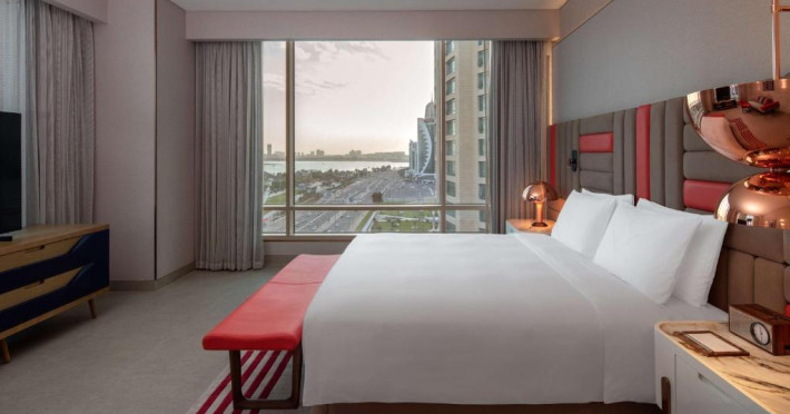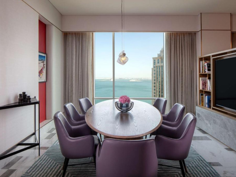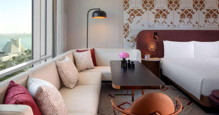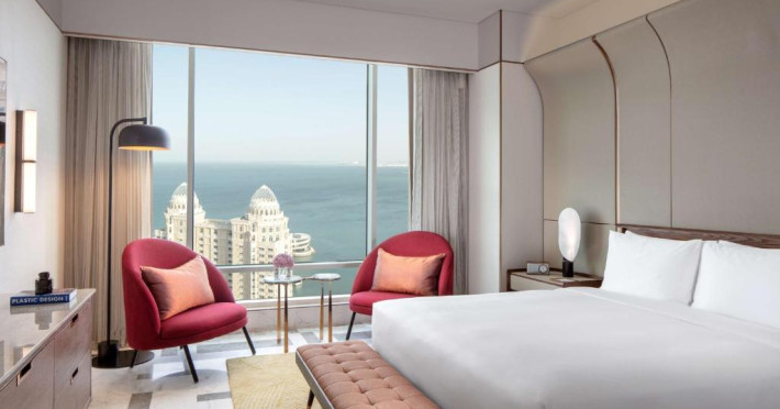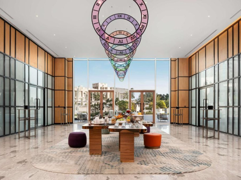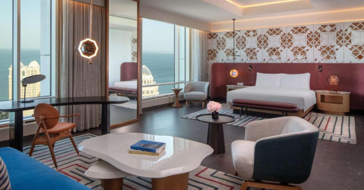 Designul contemporan al hotelului imbină elegant elementele culturale locale cu luxul modern. Camerele și suitele spațioase impresionează prin decorațiunile rafinate și priveliștile panoramice asupra orașului și Golfului Persic.
