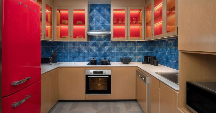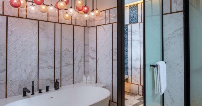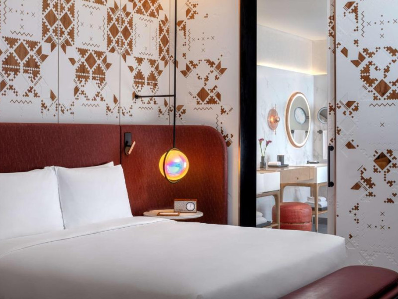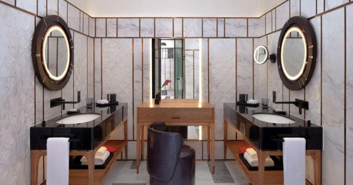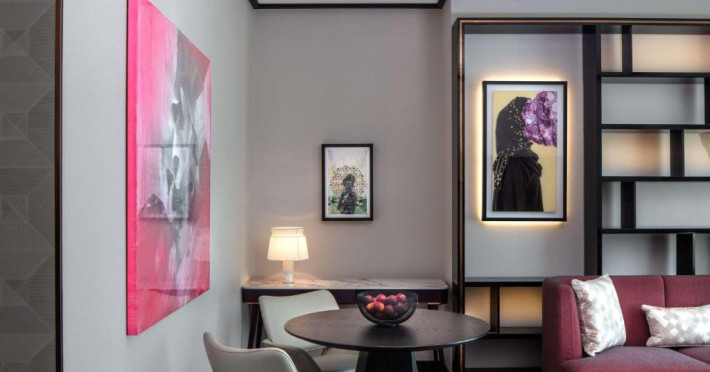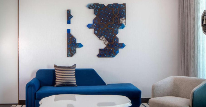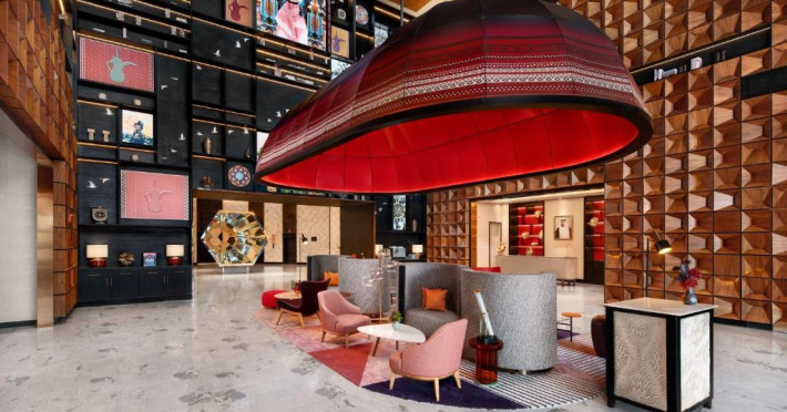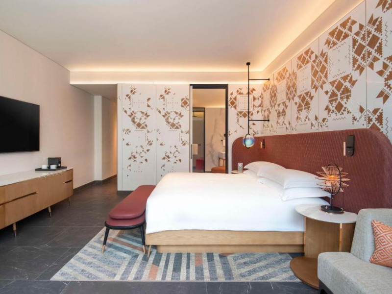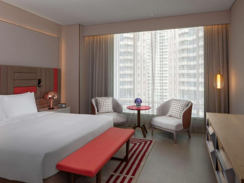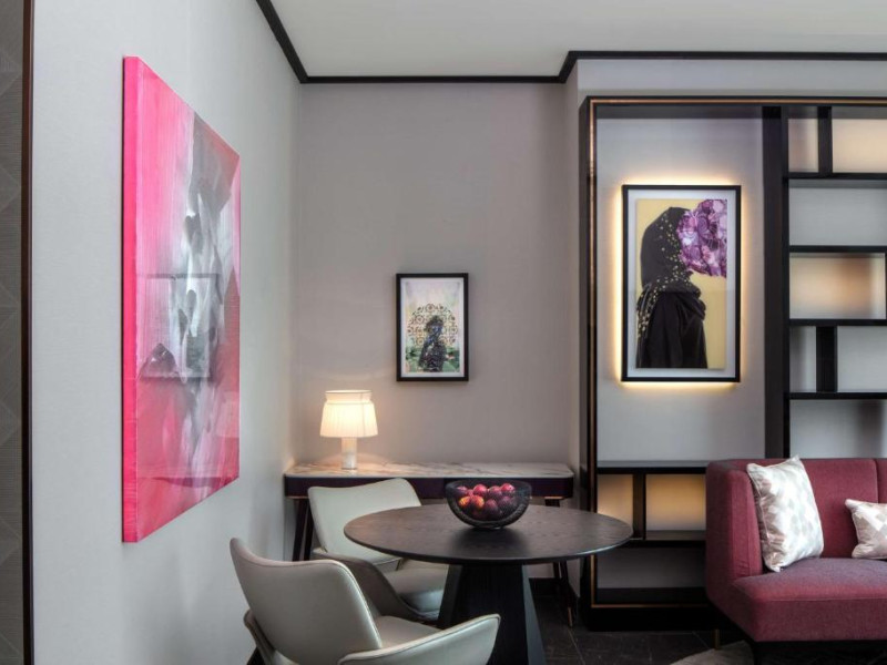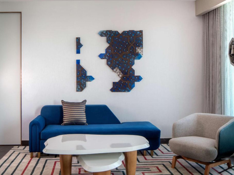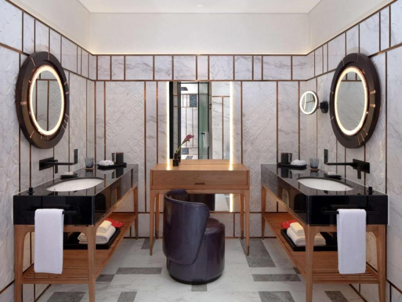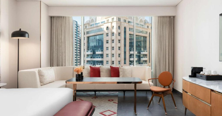 Designul contemporan al hotelului imbină elegant elementele culturale locale cu luxul modern. Camerele și suitele spațioase impresionează prin decorațiunile rafinate și priveliștile panoramice asupra orașului și Golfului Persic.