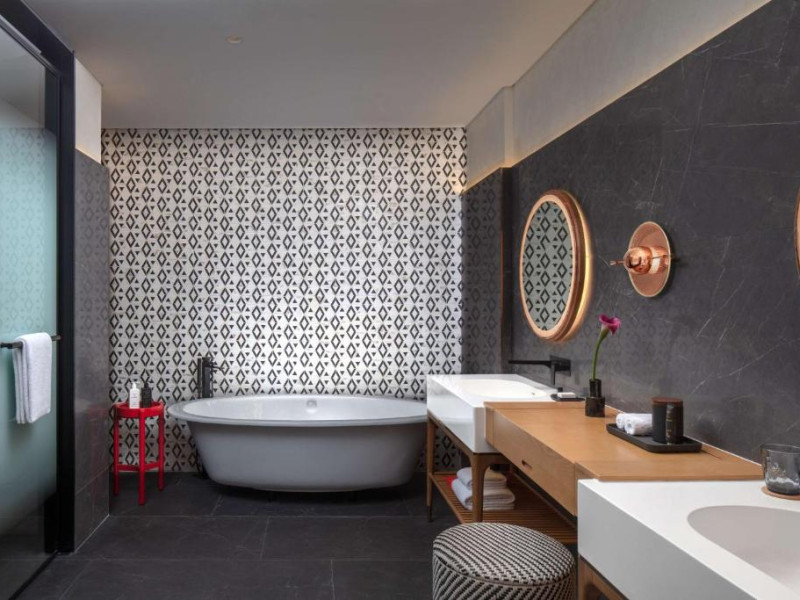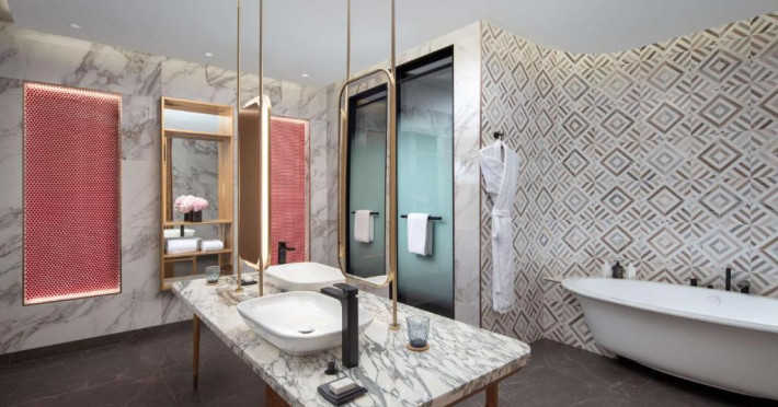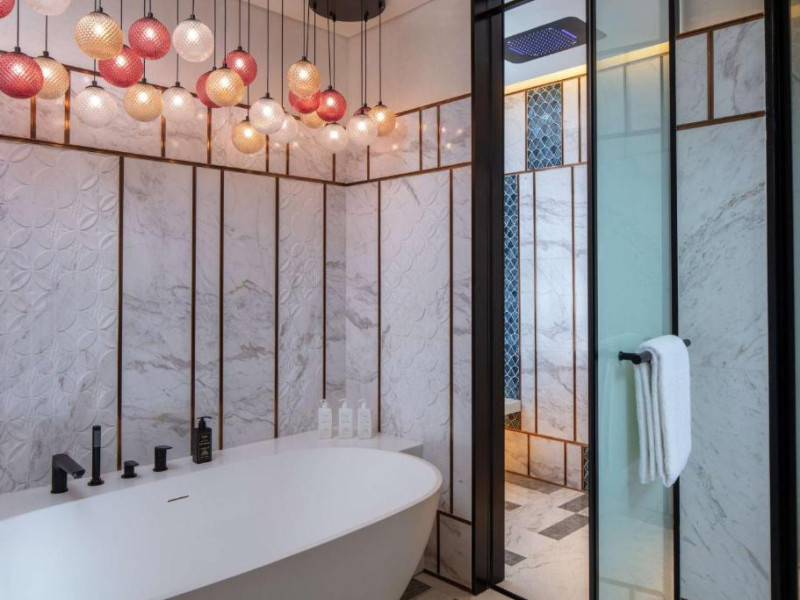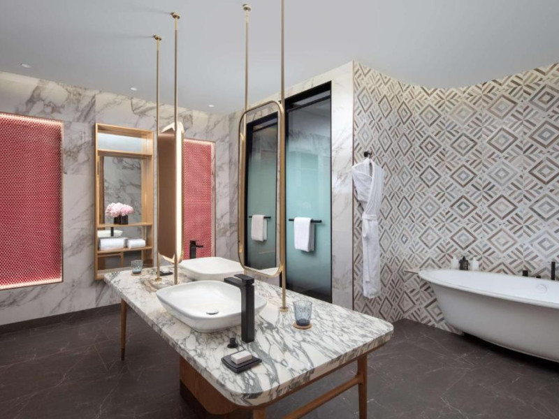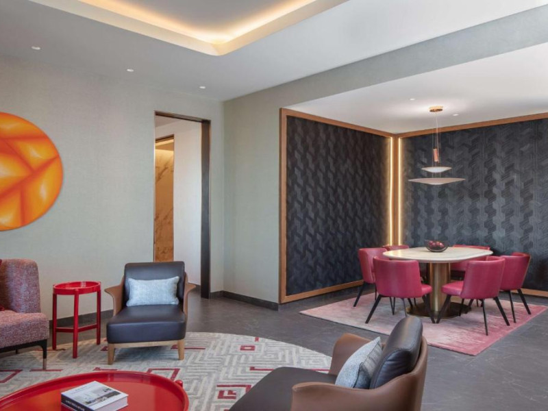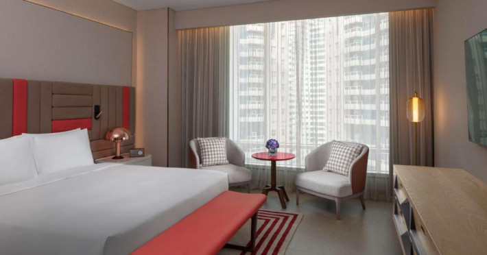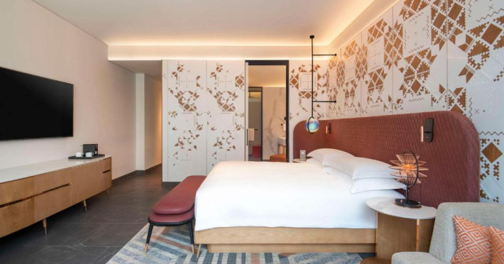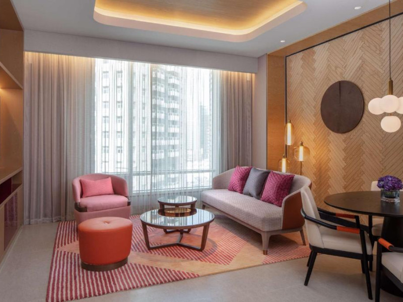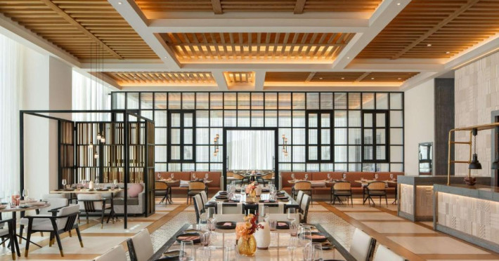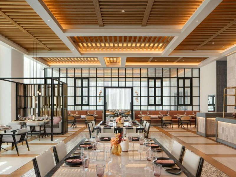 Experiența culinară este reprezentată de restaurante signature care servesc preparate locale și internaționale. Oaspeții se pot relaxa la piscina infinity cu vedere panoramică, pot beneficia de tratamente la spa sau iși pot menține rutina fitness in centrul wellness ultramodern.