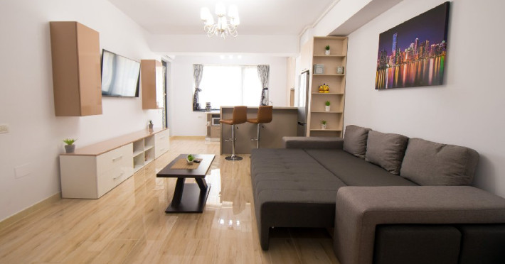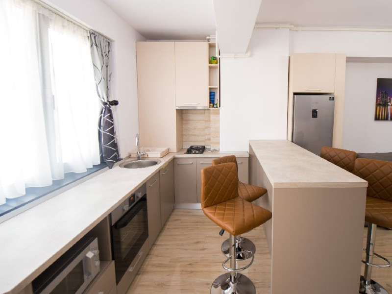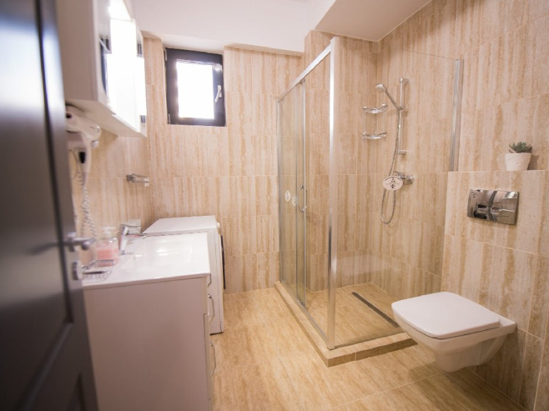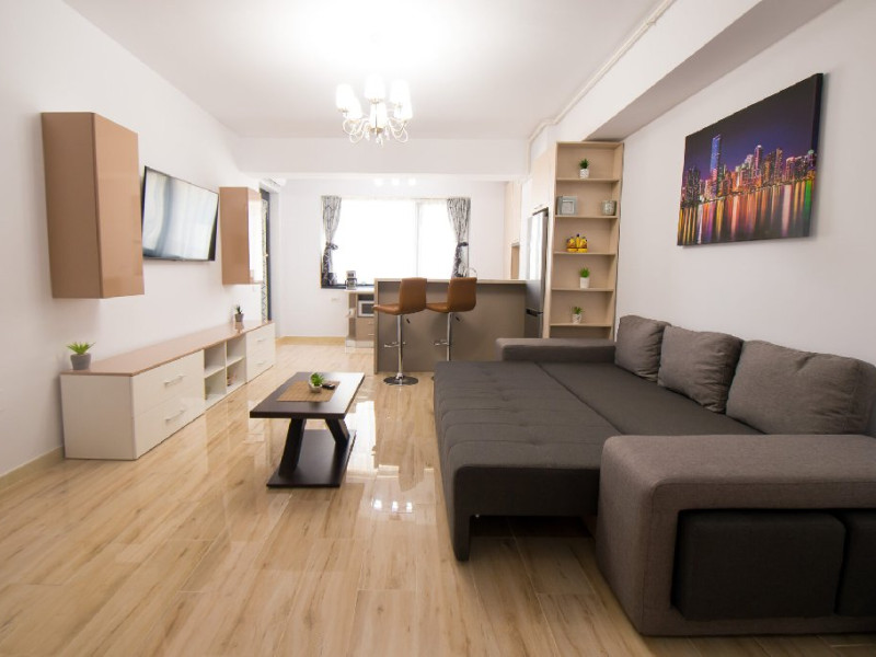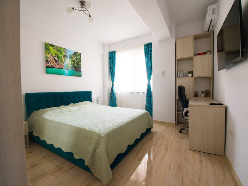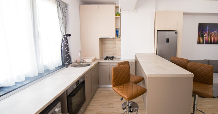 Apartamentul este complet mobilat si utilat modern. Dispune de un living cu canapea extensibila, un dormitor cu pat matrimonial si un dressing. Pentru confortul dumneavoastra, exista aer conditionat si 2 smart TV-uri. Bucataria este complet utilata, iar baia dispune de o cabina de dus. De asemenea, pentru comoditate, apartamentul pune la dispozitie o masina de spalat rufe si conexiune Wi-Fi gratuita. Pentru momentele de relaxare si admirarea privelistii spre lac, aveti acces la o terasa amenajata.