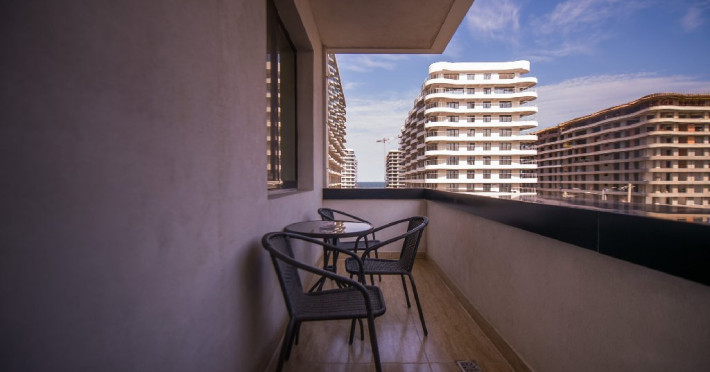 Apartament cu 2 camere cu vedere frumoasa catre mare si lac. Distanta pana la plaja este de 250 de metri, iar locatia este langa plajele Kudos si Opera. Apartamentul are capacitatea de a gazdui confortabil 4 adulti si 1 copil, iar in incinta complexului se afla si locuri de parcare la liber (accesibile pe baza unui numar de telefon transmis in avans).
