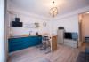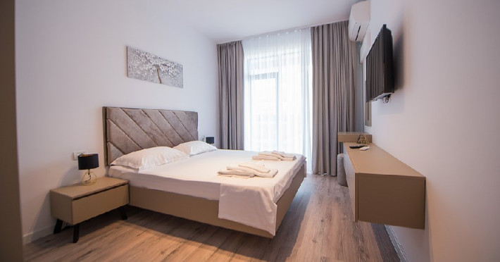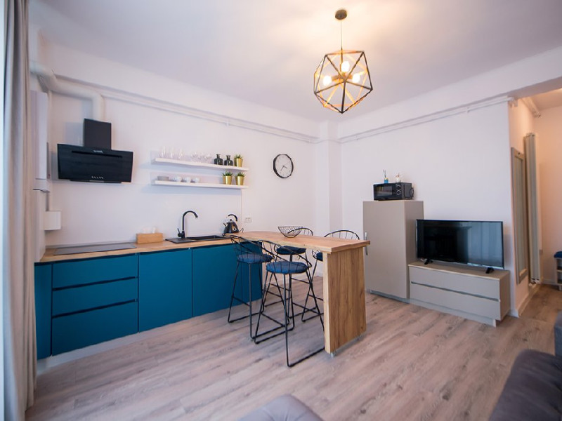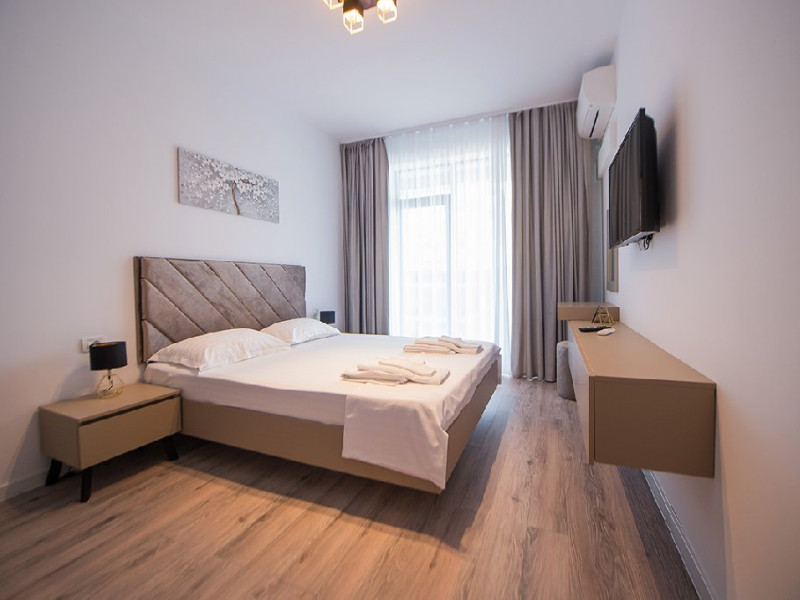 Mobilat si utilat modern, apartamentul dispune de un living spatios, dotat cu o canapea extensibila pentru momentele de relaxare si odihna. In dormitor, veti gasi un pat matrimonial, asigurandu-va un somn odihnitor pe tot parcursul sejurului.
