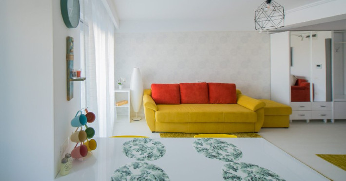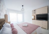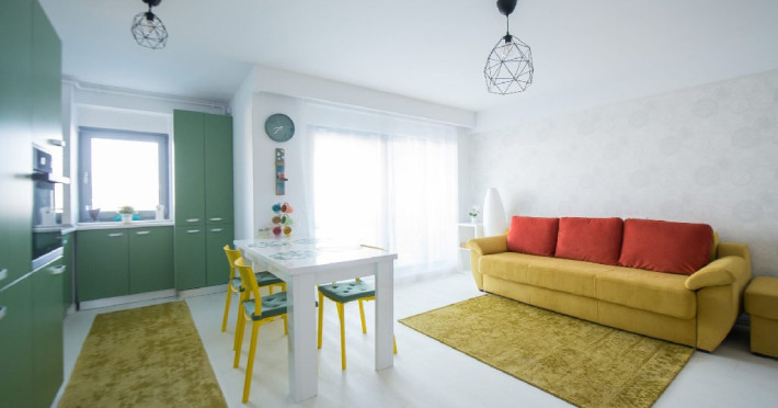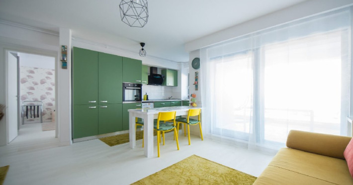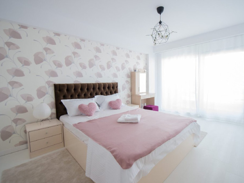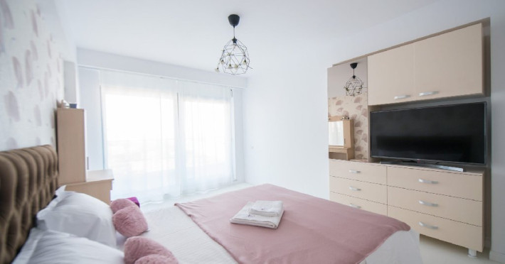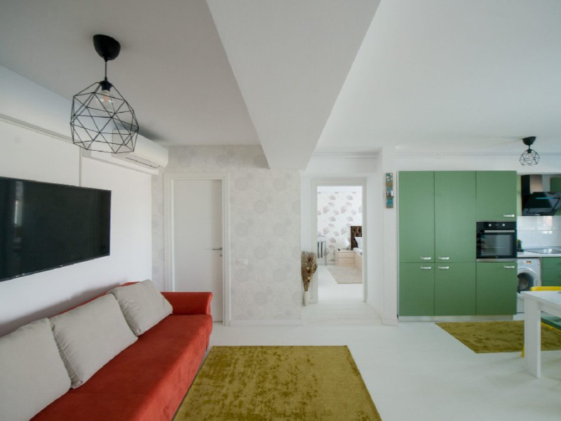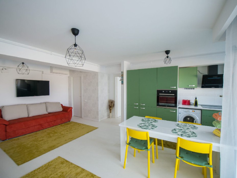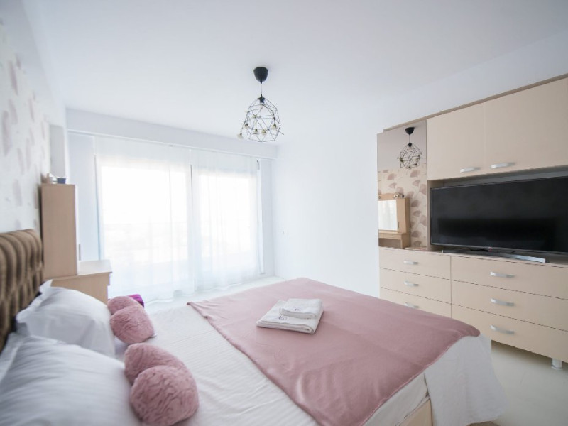 Apartamentul este complet mobilat si utilat modern, oferind un dormitor cu pat matrimonial si baie proprie. In living, se gasesc doua canapele extensibile pentru confortul oaspetilor. De asemenea, exista un dressing si aer conditionat in living pentru a face sejurul cat mai placut. Pentru divertisment, sunt disponibile 2 smart TV-uri. Bucataria este complet utilata, iar baia dispune de o cabina de dus. In plus, pentru comoditate, apartamentul are o masina de spalat rufe si ofera conexiune Wi-Fi gratuita. Pentru momentele de relaxare si admirarea privelistii catre mare, aveti acces la o terasa amenajata atat in living, cat si in dormitor.