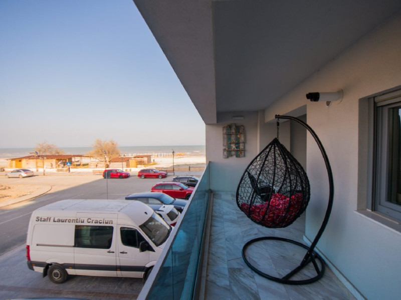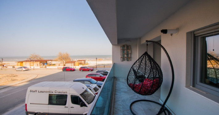 Apartament cu 2 camere situat langa plaja. Distanta pana la plaja si promenada este de doar 20 de metri. Locuinta are 2 camere, un dormitor si un living, oferind locuri de cazare pentru 4 adulti si 2 copii. Din pacate, apartamentul nu dispune de parcare privata. Se afla in statiunea Mamaia Nord, pe strada D19, la etajul 1, in blocul Wave 2, avand un balcon spatios cu vedere laterala catre mare.