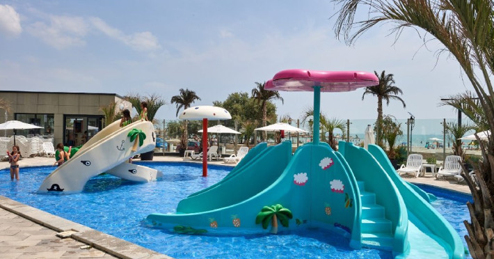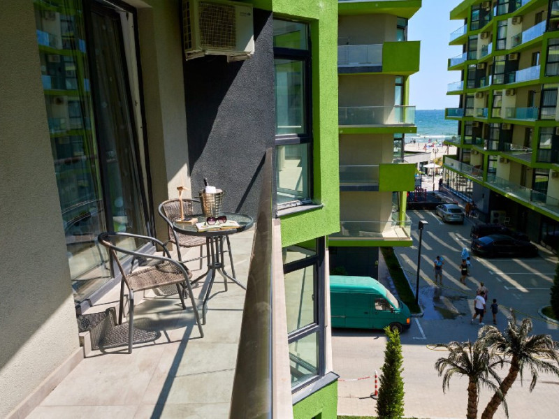 Apartamentul are un balcon cu vedere laterala catre mare, oferind o atmosfera placuta. Complexul Alezzi este bine amenajat si dispune de 4 restaurante, galerie, lounge (bar+terasa) si farmacie. Amplasat in complexul rezidential Alezzi a Beach Resort, oaspetii beneficiaza de diverse facilitati gratuite ale complexului, inclusiv SPA, sala de fitness, sauna umeda si uscata, piscine sezoniere in aer liber pentru adulti si copii, jacuzzi interior si loc de joaca pentru copii.