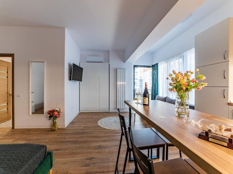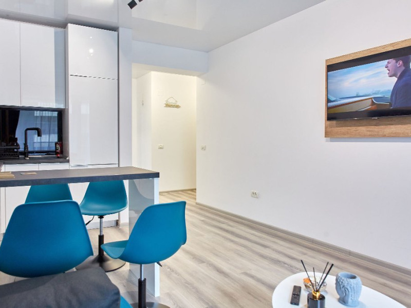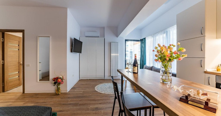 - Proprietatea are aparat de aer conditionat, precum si TV cu o diagonala de 140 in living si TV in dormitor de 110, cu o gama variata de posturi . Oaspetii nostri au acces nelimitat la internet prin wi-fi de mare viteza, electrocasnice (apartamentul fiind dotat cu tot ce este necesar, inclusiv masina de spalat), precum si la un loc de parcare acoperit si pazit in incinta ansamblului.