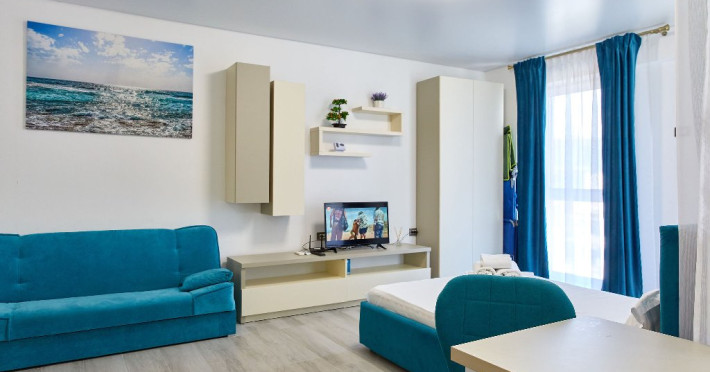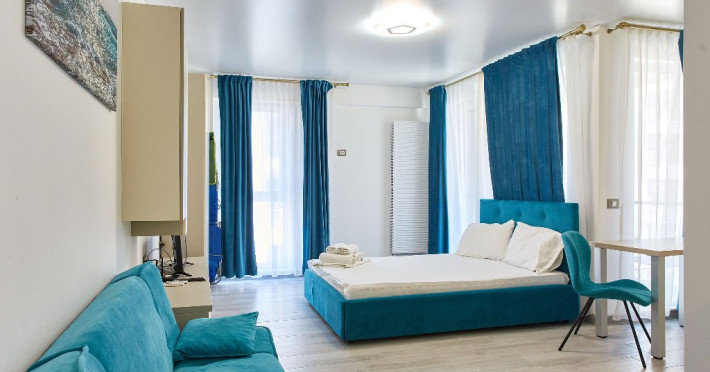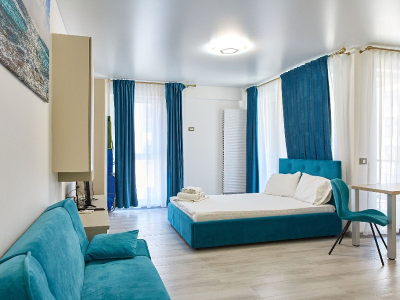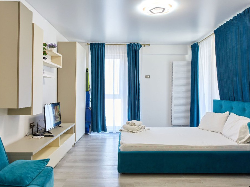 Descriere Apartamente Nord 10 Mamaia-SatComplexul Apartamente Nord 10 este situat in Mamaia Nord, una din cele mai bune zone, avand acces rapid la punctele de interes ale statiunii, in zona gasiti cele mai selecte plaje, o varietate de restaurante . Este o locatie perfecta pentru a va bucura de liniste, dar amplasat si relativ aproape (5-7min de zona de cluburi). Zona va ofera o diversitate de restaurante, cu specific diferit si magazine alimentare. Intr-o arie de 500m gasiti mai multe plaje (astfel, va puteti alege zona unde doriti sa va petreceti ziua relaxant si sa va bucurati de soare). Apartamentele sunt spatioase fiind amplasate intr-o cladire noua. Acesta beneficiaza de un interior placut si relaxant, oferind o priveliste de vis de pe terasa. Proprietatea are aparat de aer conditionat, precum si TV cu o gama variata de posturi. Oaspetii nostri au acces nelimitat la internet prin wi-fi de mare viteza, electrocasnice (apartamentul fiind dotat cu tot ce este necesar, inclusiv masina de spalat). Deasemenea, complexul ofera acces la piscina si loc de joaca pentru copii.