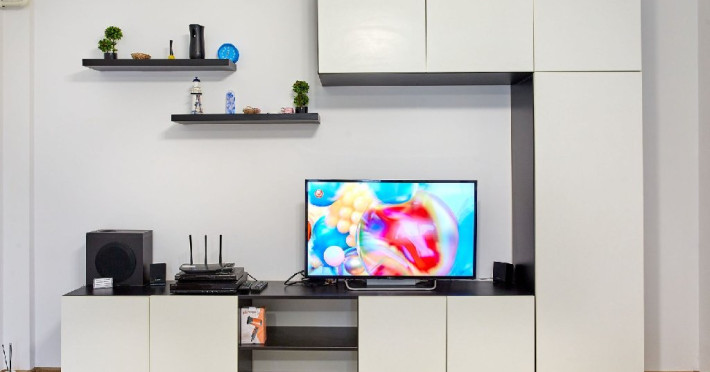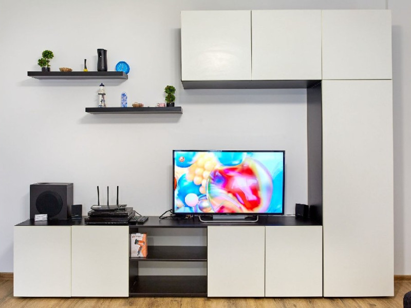 Televizor in dormitorul principal si sufragerie cu o gama variata de posturi