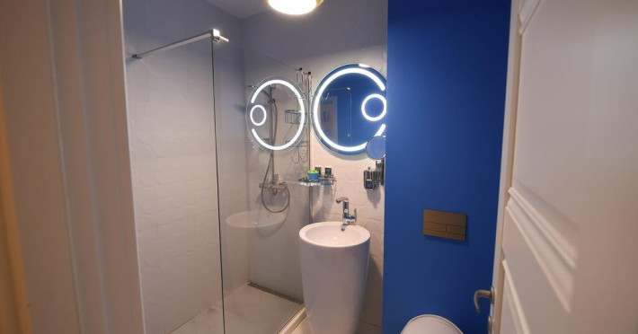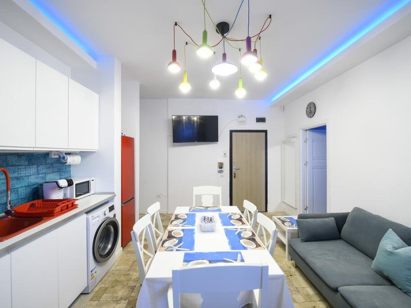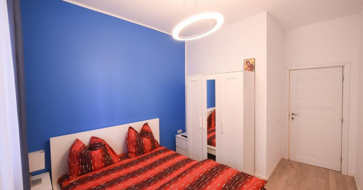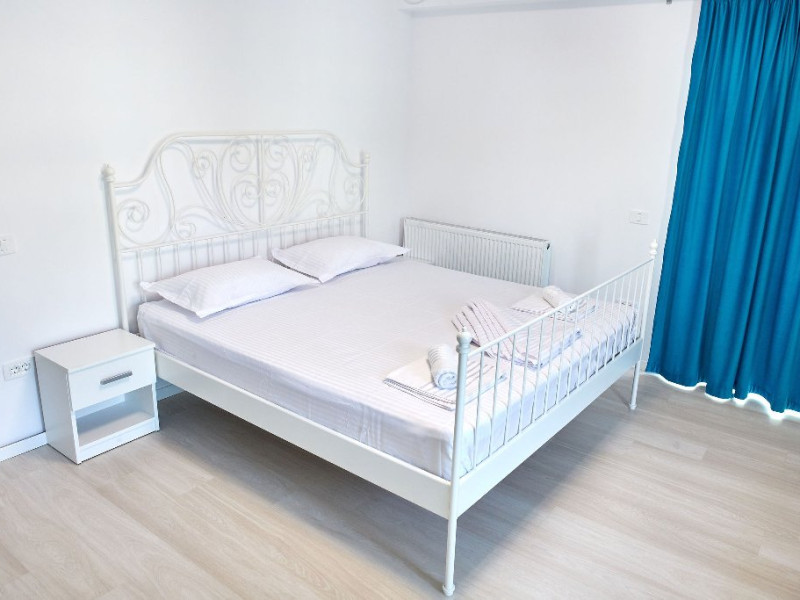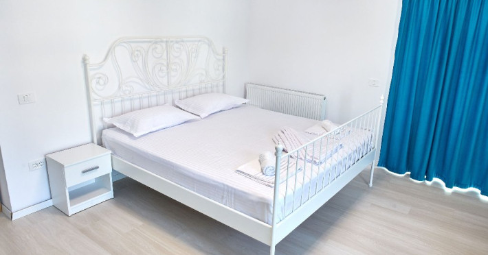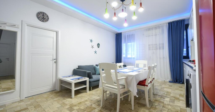 Situat in cea mai frecventata si cea mai cautata statiune turistica de pe litoral, Mamaia Nord, acesta va ofera un sejur relaxant si confortabil la malul marii. Apartament Ires se afla intr-un bloc nou construit, cu materiale de calitate pentru a oferi clientilor un ambient cat mai placut si relaxant. Datorita spatiului sau generos, apartamentul Ires are capacitatea de a gazdui pana la 6 persoane Sufragerie: Sufrageria open space a apartamentului Ires emana liniste si serenitate, avand tonuri de albastru si alb, care reamintesc de valurile marii si de spuma lor. Zona de relaxare este dotata cu o canapea confortabila extensibila si un televizor modern, ideal pentru serile de vizionare. In mijlocul camerei se afla o masa eleganta pentru servit masa, care poate gazdui cu usurinta o familie sau un grup de prieteni. Bucatarie: Bucataria este dotata cu toate facilitatile moderne necesare, de la un aragaz si cuptor cu microunde, la frigider si chiar o masina de spalat, facilitand astfel orice nevoie culinara. Designul sau simplu si functional se potriveste perfect cu restul apartamentului. Dormitoare: Primul dormitor, decorat in culori calme, dispune de un pat matrimonial si un televizor pentru momentele de relaxare. Al doilea dormitor, spatios si luminos, ofera un pat matrimonial si unul single, fiind ideal pentru o familie sau un grup de prieteni. De asemenea, este dotat cu un televizor, oferind fiecarei persoane spatiul propriu de relaxare. Baie: Baia, cu design modern si finisaje de calitate, este echipata cu un dus walk-in, oferind un spatiu generos pentru relaxare si revigorare. Datorita pozitiei sale la parter si proximitatea fata de mare, apartamentul Ires ofera acces rapid la plaja, fiind ideal pentru cei care doresc sa simta briza marii in fiecare moment al zilei.