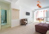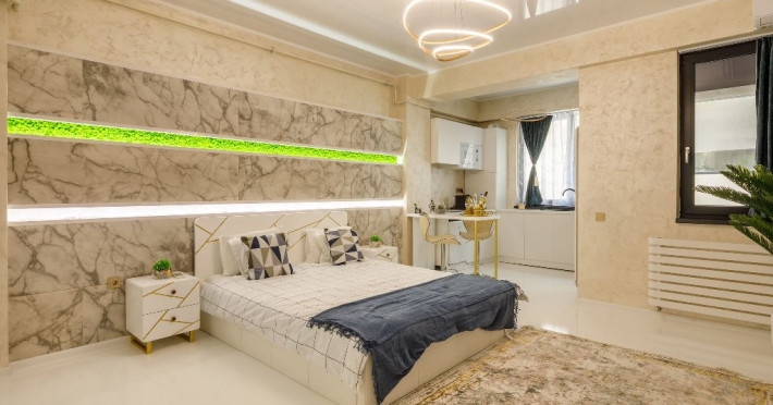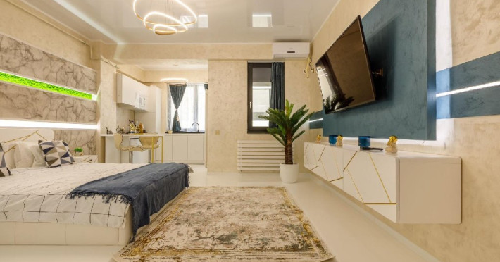 Studio-ul De Beni din Stefan Resort este o bijuterie de design interior, unde luxul si eleganta sunt la ele acasa, creand o atmosfera de rafinament si confort.
