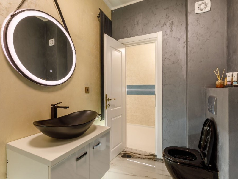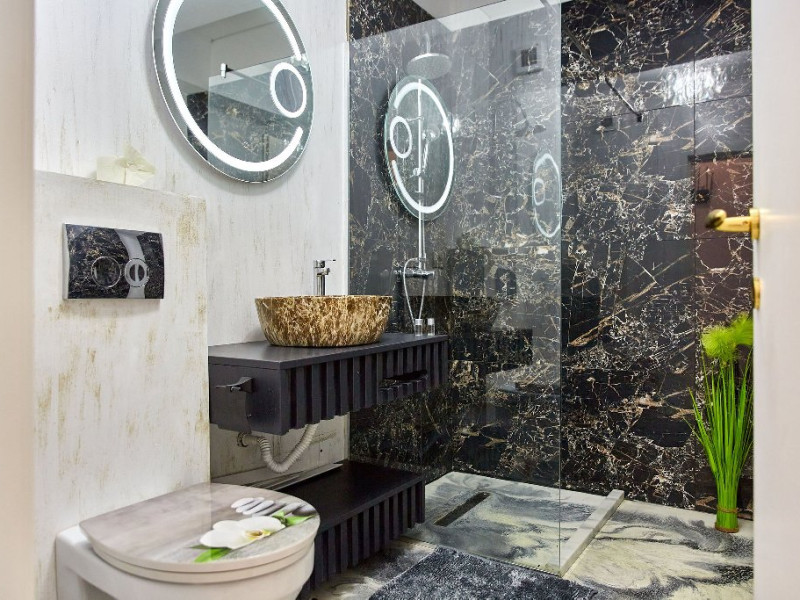 Oaza de Relaxare in Baie: Intrati intr-o lume de rafinament si stil in baia noastra, unde finisajele de lux se imbina armonios cu accentele elegante si atentia la detalii. Pregatiti-va sa va rasfatati si sa va relaxati intr-o experienta de baie de neuitat, care va va invalui intr-un confort absolut.