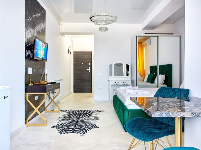 - Bine ati venit la George Luxury Studio, situat in prestigiosul Stefan Resort, unde luxul si eleganta se intalnesc pentru a va oferi o experienta memorabila!