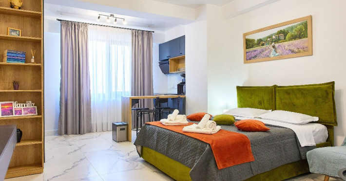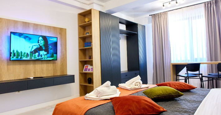Studio Lotus ofera o atmosfera contemporana si confortabila, unde designul modern si finisajele elegante se intalnesc pentru a crea un spatiu placut si functional.