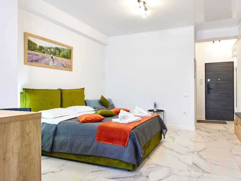 Proprietatea este formata din 2 camere spatioase, va pune la dispozitie pat matrimonial, canapea extensibila, 2 smart TV, dressing, baie si bucatarie.