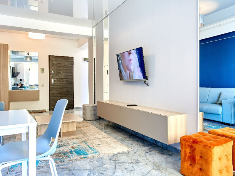 Deasemenea in apartament se regaseste aer conditionat pentru zilele toride de vara, smart Tv cu o gama larga de posturi, wi-fi de cea mai buna calitate.