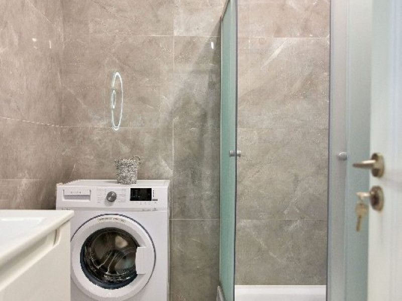 Oaza de Relaxare in Baie: Baia noastra este spatiul unde va puteti rasfata cu o baie revigoranta sau o dus revitalizant. Dotata cu tot necesarul, inclusiv masina de spalat si cabina de dus, baia va ofera tot confortul de care aveti nevoie pentru a va simti ca acasa.