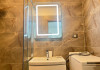 Baia este un exemplu de functionalitate si design contemporan, cu o cabina de dus spatioasa si o oglinda cu iluminare integrata, care adauga o nota de sofisticare si un sentiment de spatiu deschis. Fiecare element este atent selectat pentru a asigura confortul si pentru a satisface cele mai inalte standarde de estetica si functionalitate.
