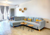 La pasul in apartamentul Vinaros din Complexul Alezzi, esti intampinat de o sufragerie open space, inundata de lumina si mobilata in nuante deschise. Ambianta placuta este accentuata de canapeaua extensibila, potrivita pentru momente de relaxare sau odihna. In fata acesteia, un televizor modern este gata sa ofere divertisment, fie ca optezi pentru filme, seriale sau emisiuni.
