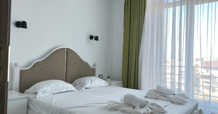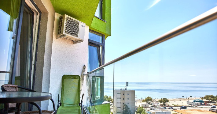 Fiind compus din doua camere, acces din fiecare pe terasa - cu vederea spre mare, apartamentul ofera capacitate de gazduire pentru 4 persoane.