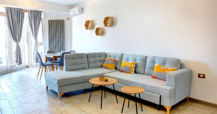 - Proprietatea are aparat de aer conditionat, precum si TV cu o diagonala de 110 in living si TV in dormitor de 100, cu o gama variata de posturi . Oaspetii nostri au acces nelimitat la internet prin wi-fi de mare viteza, electrocasnice (apartamentul fiind dotat cu tot ce este necesar, inclusiv masina de spalat).