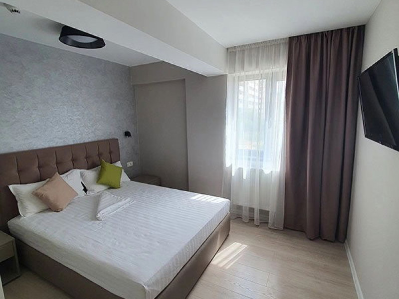 ApartHotel Nevada înseamnÄ 38 de apartamente cu douÄ camere complet utilate Èi dotate. Ãn fiecare dintre apartamentele noastre veÈi regÄsi dormitor cu pat matrimonial, living cu canapea extensibilÄ Èi zonÄ de birou, televizor cu ecran plat, baie cu duÈ, prevÄzut cu scurgere în pardosealÄ, bucÄtÄrie complet dotatÄ Èi echipatÄ â frigider, cuptor cu microunde, aragaz Èi hotÄ, maÈinÄ de spÄlat, ustensile Èi veselÄ. BifÄm, de asemenea, aerul condiÈionat Èi internetul de mare vitezÄ Èi precizÄm cÄ toate apartamentele sunt prevÄzute cu balcon. Imobilul beneficiazÄ de parcare la demisol, precum Èi de parcare cu barierÄ, în curtea interioarÄ a imobilului.