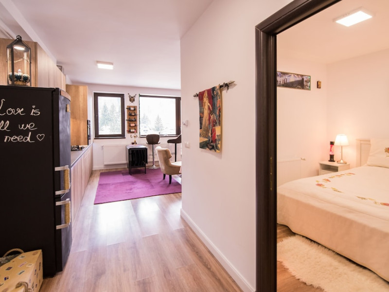 Property Desc:Property Location Located in Sinaia, this apartment is within a 10-minute drive of Sinaia - Cota 1400 and Sinaia Monastery. This 4-star apartment is 3 mi (4.8 km) from The Sinaia Casino and 3.7 mi (6 km) from PeliÅor Palace.Rooms Make yourself comfortable in this apartment, featuring a kitchen with a full-sized refrigerator/freezer and an oven. A Smart television with cable programming provides entertainment, while complimentary wireless internet access keeps you connected. Conveniences include a coffee/tea maker and a washing machine, and housekeeping is provided on request.Amenities Take in the views from a terrace.Attractions Distances are displayed to the nearest 0.1 mile and kilometer. Sinaia - Cota 1400 - 4.3 km / 2.7 mi Sinaia Monastery - 4.8 km / 3 mi The Sinaia Casino - 4.9 km / 3 mi PeliÅor Palace - 6 km / 3.7 mi FoiÅorul Hunting Lodge - 6.2 km / 3.9 mi PeleÈ Castle - 7.1 km / 4.4 mi Urlatoarea Waterfall - 11.1 km / 6.9 mi Busteni - Babele - 11.1 km / 6.9 mi Cota 1400 - Cota 2000 - 11.4 km / 7.1 mi Cantacuzino Castle - 12 km / 7.5 mi Sinaia Ski Resort - 12.7 km / 7.9 mi Telegondola - 13.3 km / 8.3 mi Bucegi National Park - 14.2 km / 8.8 mi IalomiÅ£a - 21.7 km / 13.5 mi Lake Bolboci - 23.7 km / 14.7 mi The nearest airports are:BraÈov-Ghimbav Intl. Airport (GHV) - 63.9 km / 39.7 mi Henri Coanda Intl. Airport (OTP) - 105.7 km / 65.7 mi Bucharest (BBU-Aurel Vlaicu) - 113.9 km / 70.8 mi House RulesChildren welcomeNo petsNo smokingSpoken LanguagesEnglishRomanianKnow Before You Go: This property advises that enhanced cleaning and guest safety measures are currently in place.The property is professionally cleaned; disinfectant is used to clean the property; commonly-touched surfaces are cleaned with disinfectant between stays; bed sheets and towels are laundered at a temperature of at least 60°C/140°F.Contactless check-in and contactless check-out are available.This property affirms that it adheres to the cleaning and disinfection practices of COVID-19 Guidelines (CDC). Mandatory Fees and Taxes: Youll be asked to pay the following charges at the property: A tax is imposed by the city: RON 6.00 per person, per night. This tax does not apply to children under 18 years of age. We have included all charges provided to us by the property. Checkin Instructions: Extra-person charges may apply and vary depending on property policyGovernment-issued photo identification and a credit card, debit card, or cash deposit may be required at check-in for incidental chargesSpecial requests are subject to availability upon check-in and may incur additional charges; special requests cannot be guaranteedThis property is professionally cleanedSafety features at this property include a fire extinguisher and a smoke detector Special Checkin Instructions: There is no front desk at this property. To make arrangements for check-in please contact the property at least 72 hours before arrival using the information on the booking confirmation. Guests must contact the property in advance for check-in instructions and an access code. The host will greet guests on arrival. Guests can choose to either self-clean the property prior to check-out, or pay an additional cleaning fee of RON 80 at check-out.Checkin Time: 2:00 PMCheckin End Time: midnightCheckout Time: 11:00 AM