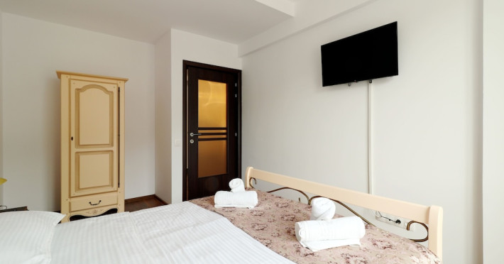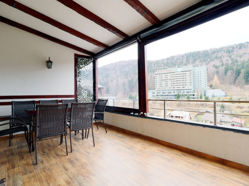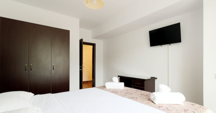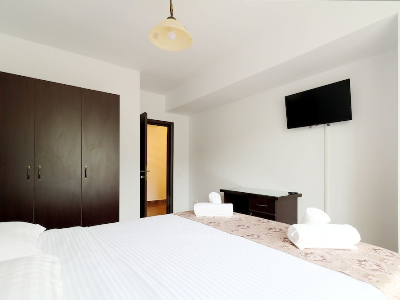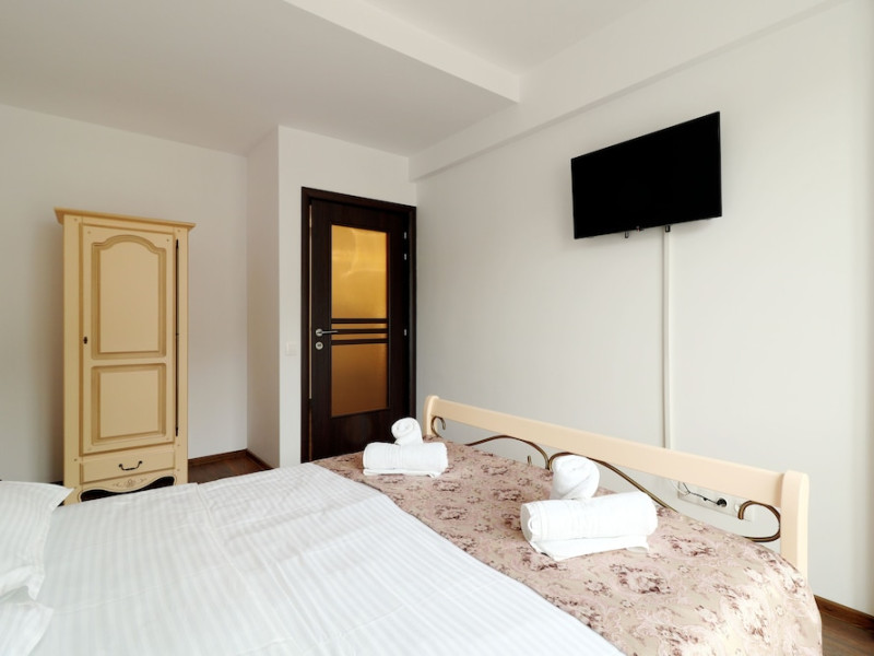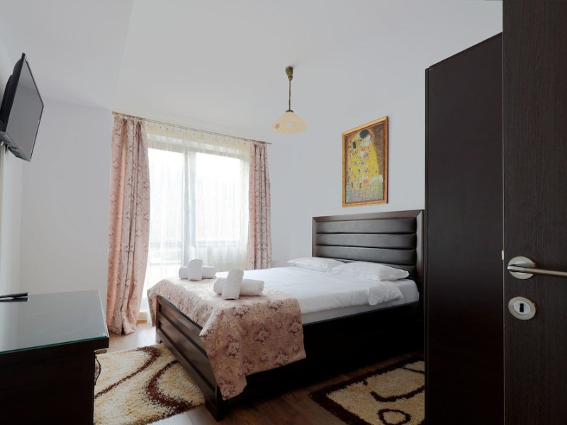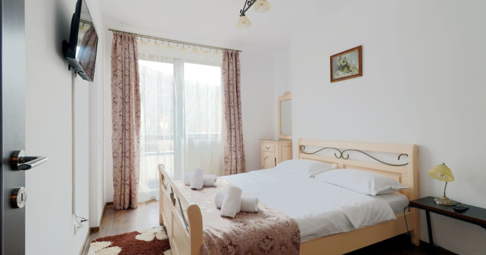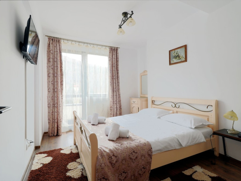 Sofia Apartment is a sustainable apartment in Sinaia, 2.5 miles from Stirbey Castle. This property encourages guests to embrace nature with its eco-friendly arrangements. This property offers access to a balcony, free private parking, and free Wifi. The accommodation features a 24-hour front desk and an elevator for guests. Featuring a terrace and mountain views, the spacious apartment includes 3 bedrooms, a living room, satellite TV, an equipped kitchen, and 2 bathrooms with a shower. Towels and bed linen are available in the apartment. The accommodation is non-smoking. George Enescu Memorial House is 3.8 miles from the apartment, while BraÅov Adventure Park is 27 miles from the property. The nearest airport is Bucharest Henri CoandÄ International Airport, 65 miles from Sofia Apartment.WiFi is available in all areas and is free of charge. Free private parking is available on site (reservation is not needed). Pets are not allowed. Children of all ages are allowed. You havent added any cribs. You havent added any extra beds.Checkin Time: 15:00Checkin End Time: 00:00Checkout End Time: 11:00Hotel important information: In response to the coronavirus (COVID-19), additional safety and sanitation measures are in effect at this property.