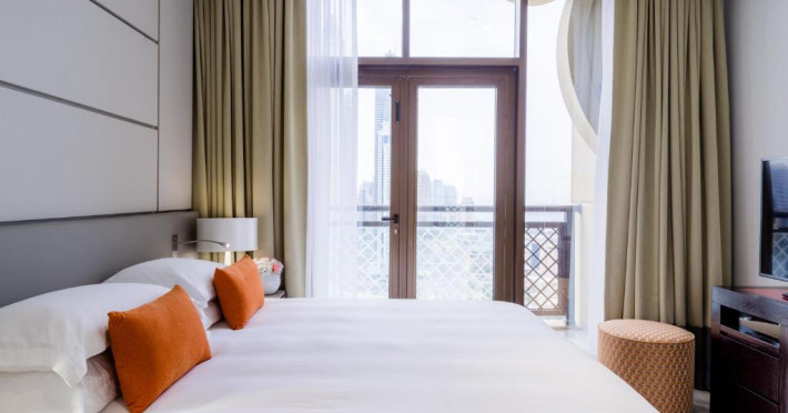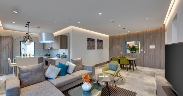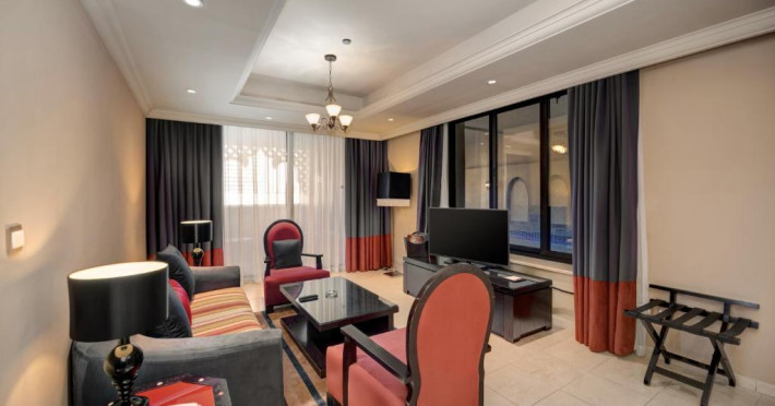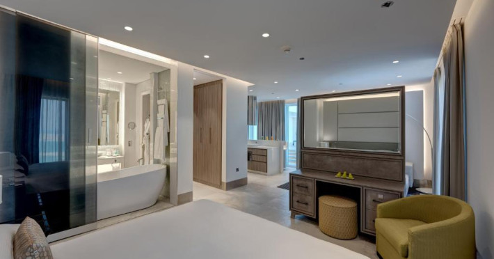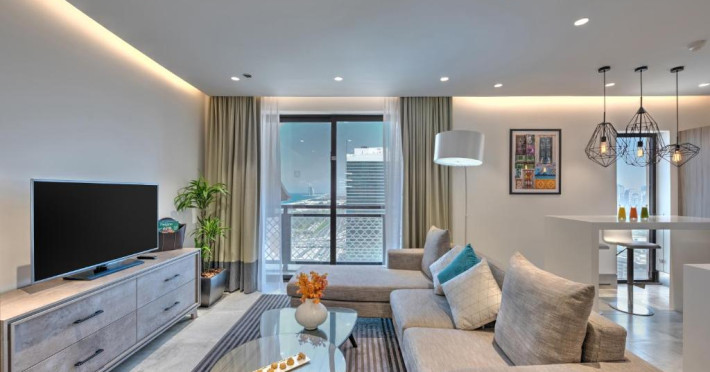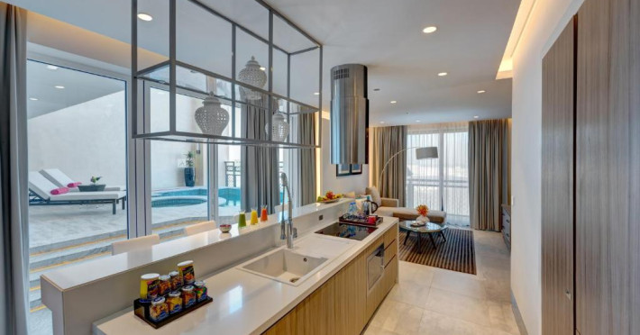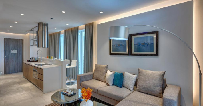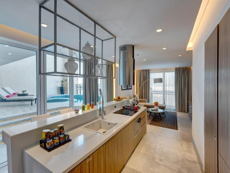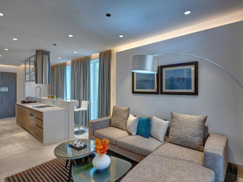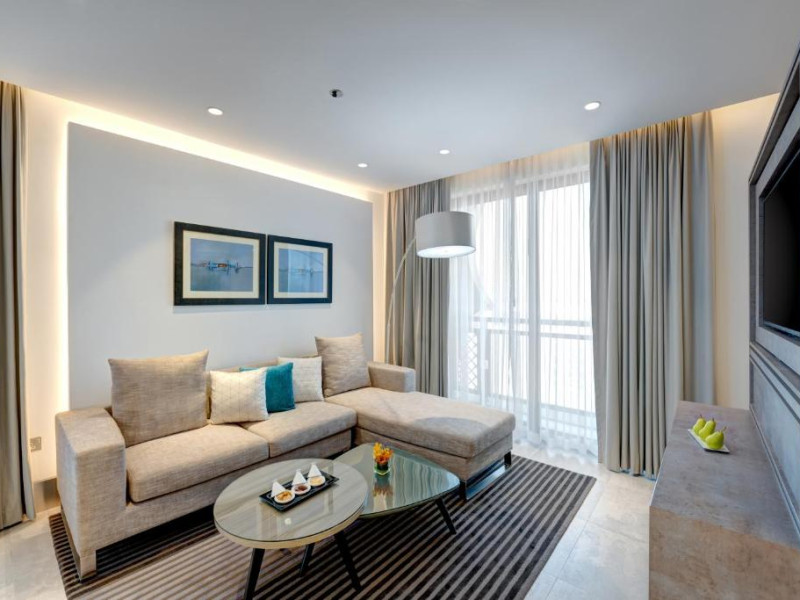 Suitele și apartamentele spațioase de la Arjaan by Rotana au interioare in stil maur contemporan, care se deschid spre balcoane cu peisaj pitoresc și vedere la mare. Oaspeții se pot relaxa in camera de zi spațioasă, dotată cu TV LCD. Există o bucătărie complet utilată, care include un cuptor, un aragaz și un cuptor cu microunde.
