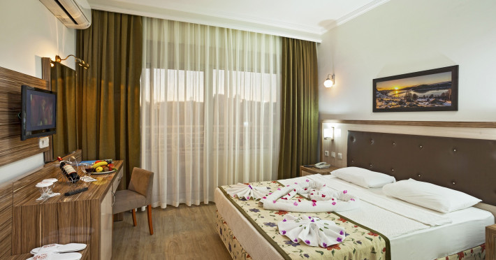 Guests have a choice of 213 non-smoking rooms, including 173 double rooms, located in two 3-storey buildings with lifts. The reception desk in the lobby is staffed round the clock. Amenities include a baggage storage service, a safe and a currency exchange service. Wireless internet access (for a fee) allows guests to stay connected while on holiday. The tour desk offers assistance with booking excursions. Wheelchair-accessible facilities are available. A number of shops, including a supermarket and souvenir shop, are great for shopping or just browsing. The grounds of the hotel feature a playground and a lovely garden. Additional amenities include a TV room and a playroom. Guests arriving by car can park their vehicles in the garage (no extra charge) or in the car park. Further services and facilities include a childcare service, medical assistance, room service, a laundry service, a hairdresser, a coin-operated laundry and a hotel doctor. Travellers with bicycles can make use of the on-site bicycle storage area. 2 conference rooms are available for lectures, presentations and meetings.