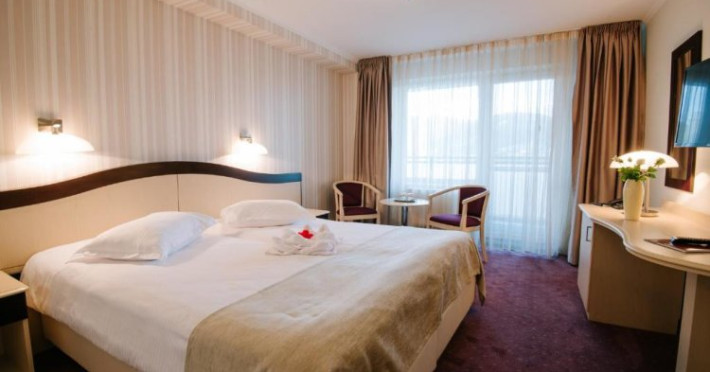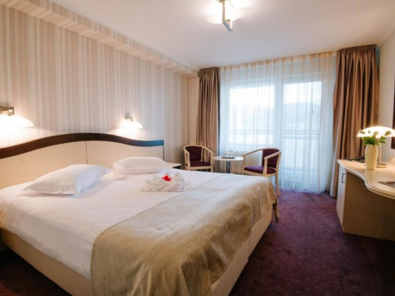 Here, you wont puzzle over the place to go as everything you need is close by. Resort Caprioara Spaamp;Wellness Resort is located in Covasna. This resort is located in the very center of the city. In the morning, have a cup of coffee while looking at the city from the window.Here, you wont puzzle over the place to go as everything you need is close by. Resort Caprioara Spaamp;Wellness Resort is located in Covasna. This resort is located in the very center of the city. In the morning, have a cup of coffee while looking at the city from the window.You can stop by the restaurant. Free Wi-Fi is available on the territory. Ask for more information when checking in. If you travel by car, theres a free parking zone. The beauty and wellness services: a steam bath and a spa center.Sports fans will be able to enjoy a fitness center. You can arrange a business meeting, a board meeting, and even a job interview as there is a conference hall. Accessible for guests with disabilities: the elevator helps them to go to the highest floors. Additional services that the resort offers to its guests: a laundry, dry cleaning, a safe-deposit box and a concierge.You can stop by the restaurant. Free Wi-Fi is available on the territory. Ask for more information when checking in. If you travel by car, theres a free parking zone. The beauty and wellness services: a steam bath and a spa center.Sports fans will be able to enjoy a fitness center. You can arrange a business meeting, a board meeting, and even a job interview as there is a conference hall. Accessible for guests with disabilities: the elevator helps them to go to the highest floors. Additional services that the resort offers to its guests: a laundry, dry cleaning, a safe-deposit box and a concierge..1 RON not included 40 per guest per night