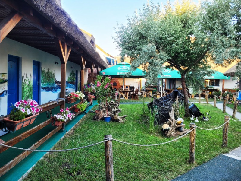 Descriere: Casa Alb Albastra din Sfantu Gheorghe Delta ofera cazare in camere dotate cu pat matrimonial si baie proprie (pat suplimentar la cerere), aer conditionat, apa calda 24h, terasa, internet wireless, foisor cu tv, loc de joaca pentru copii (trambulina, topogan, jucarii). La cererea turistilor se asigura pensiune completa sau demipensiune, meniuri din peste traditionale sau preparate din carne la cerere.Bucatareasa asteapta turistii cu diferite surprize! Casa detine ambarcatiune de agrement si ofera posibilitatea observarii indeaproape a florei si faunei deltei, organizand plimbari pe traseele turistice din Delta Dunarii. Se ofera transport la mare si retur, cu acel numit Trocarici (pe care il detin). Posibilitate de transfer: Murighiol-Sf.Gheorghe, Mahmudia-Sf.Gheorghe si retur.