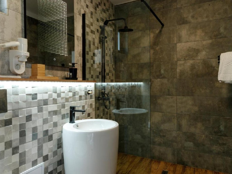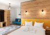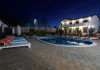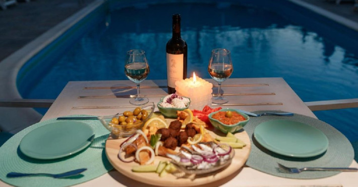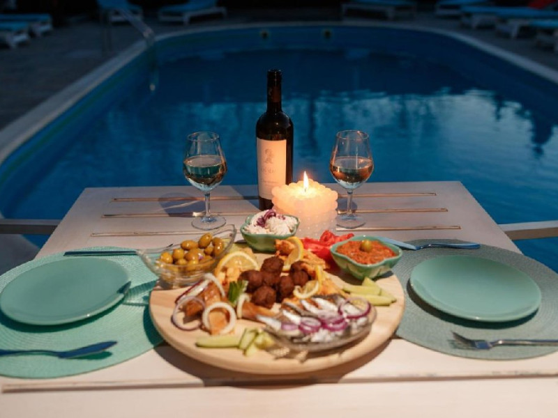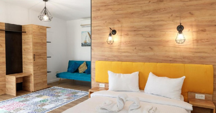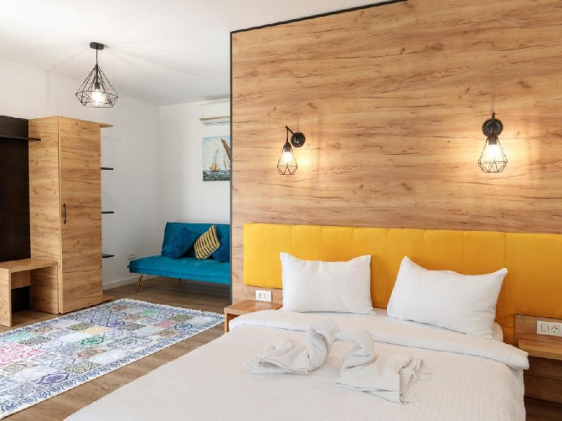 Camere: Locatia pune la dispozitie 8 camere duble cu suprafata de 24mp, cu paturi duble foarte generoase si 4 bungalouri moderne ce contin 8 studiouri cu suprafata de 33 mp fiecare. Studiourile au pat matrimonial si canapea extensibila, fiind forma ideala de cazare pe care o recomandam familiilor cu copii. Toate camerele sunt dotate cu grup sanitar propriu, aer conditionat, tv plat sau Smart Tv, internet, frigider, uscator de par.