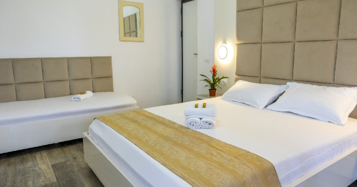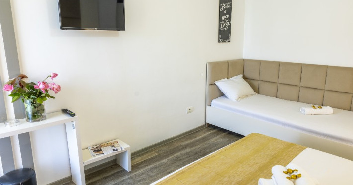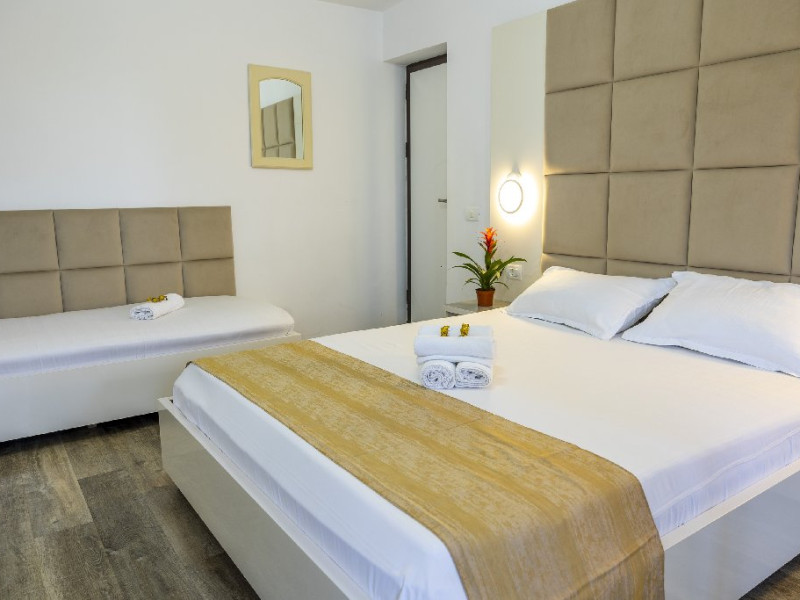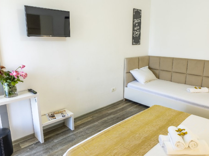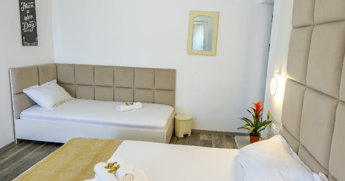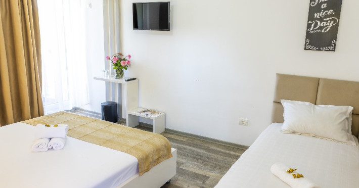 Camerele triple au in dotare 1 pat matrimonial si 1 pat de o persoana si sunt impartite in vile cu parter + 2 etaje. Repartizarea se face la receptia hotelului.