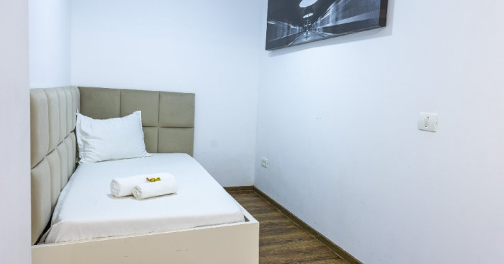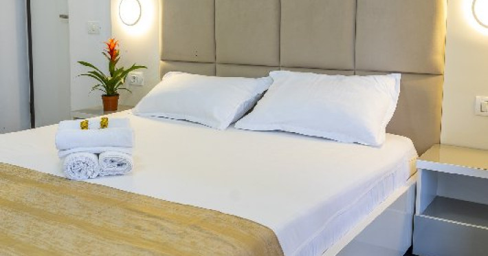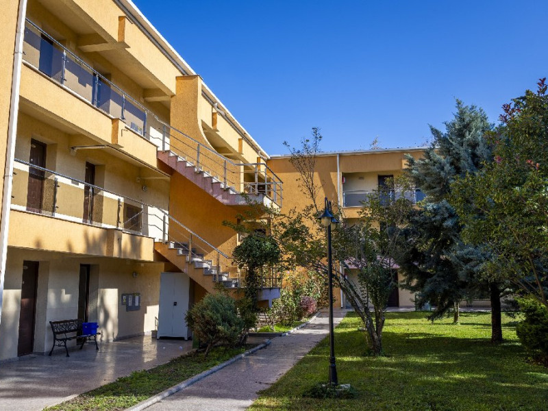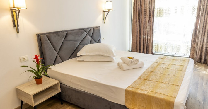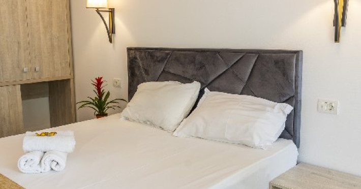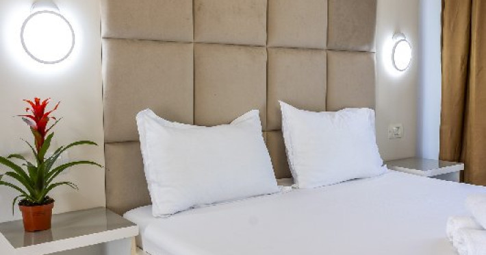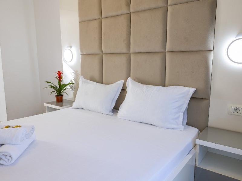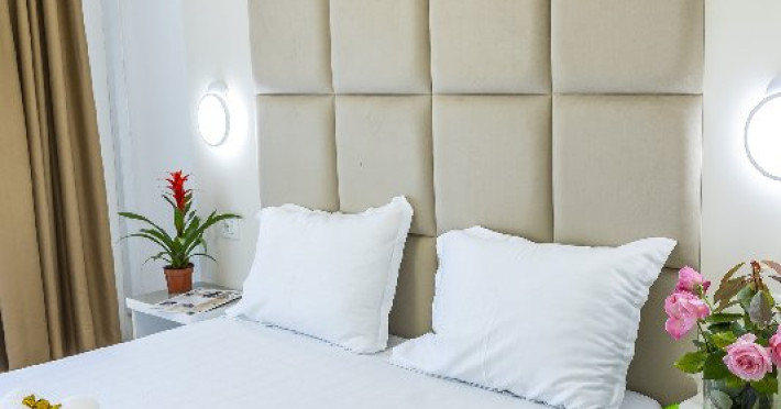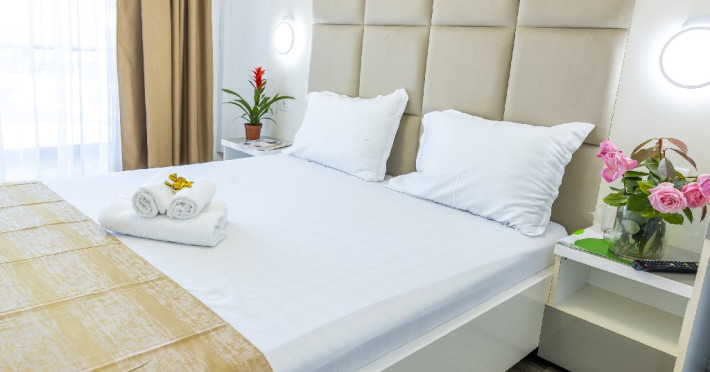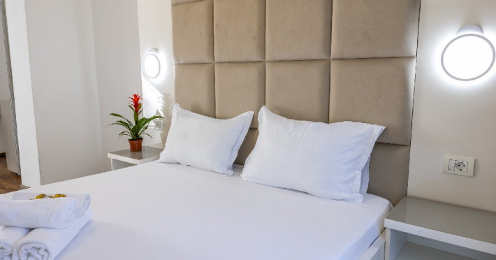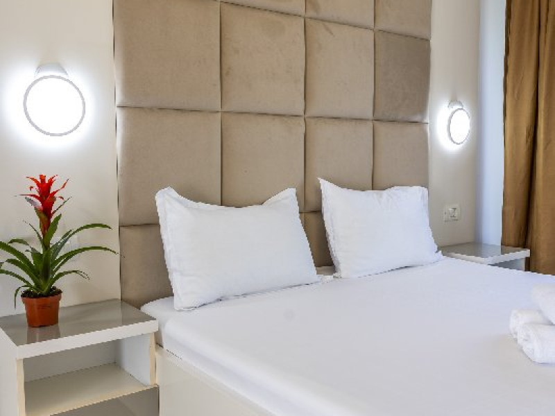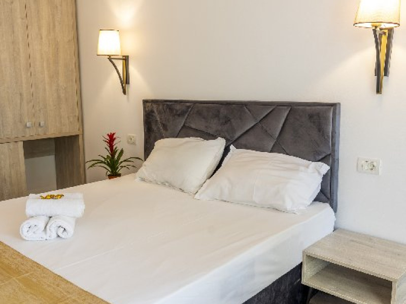 Apartamentele, impartite in corpuri de cladiri cu regim de inaltime parter, sunt dotate cu pat matrimonial si un pat single, fara usa intre camere, baie cu dus, terasa.