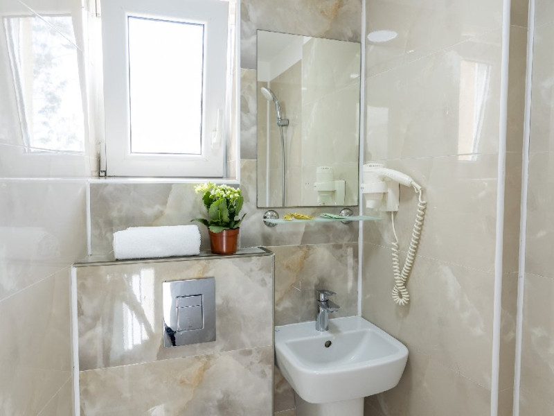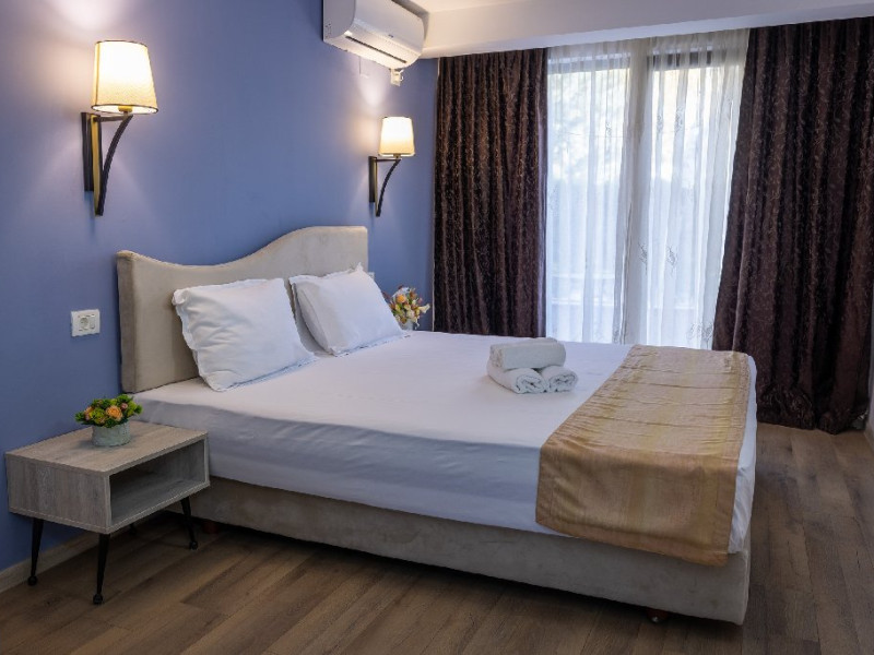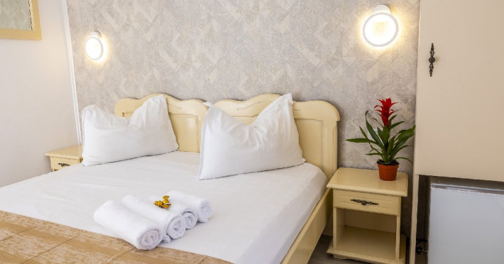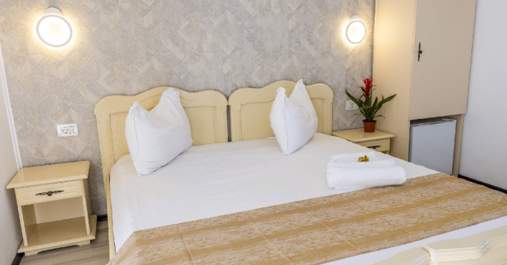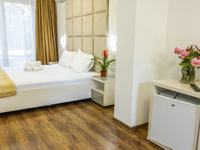 Toate camerele au balcon sau terasa, grup sanitar propriu cu cabina de dus (uscator de par pus la dispozitie la solicitare in cadrul receptiei), pardoseala din parchet / gresie, mobilier, tamplarie PVC cu geam termopan, apa calda non-stop, complexul avand incalzirea pe baza de panouri solare / centrala proprie, televizor, aer conditionat, minibar.