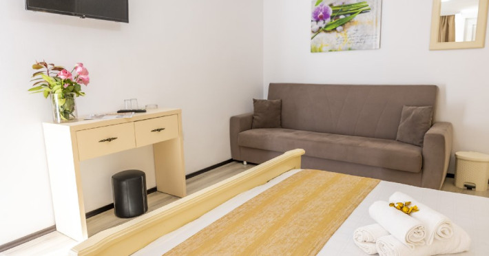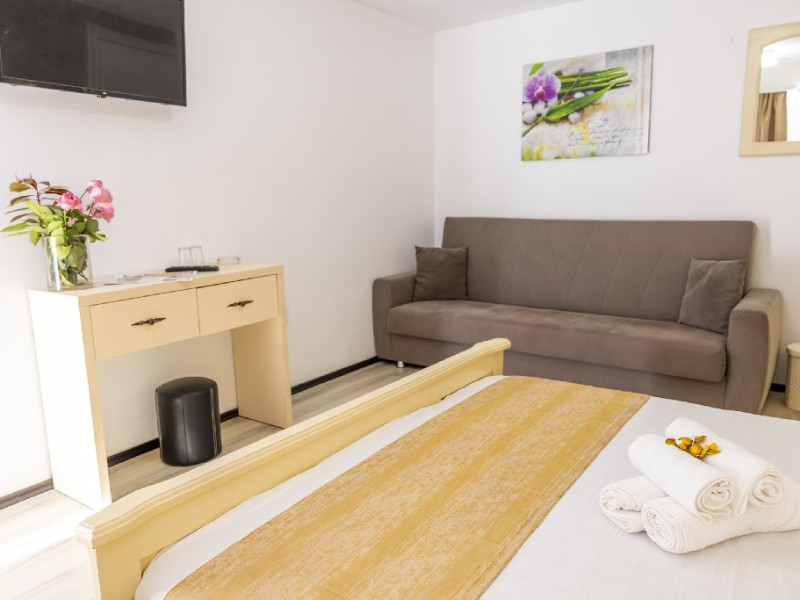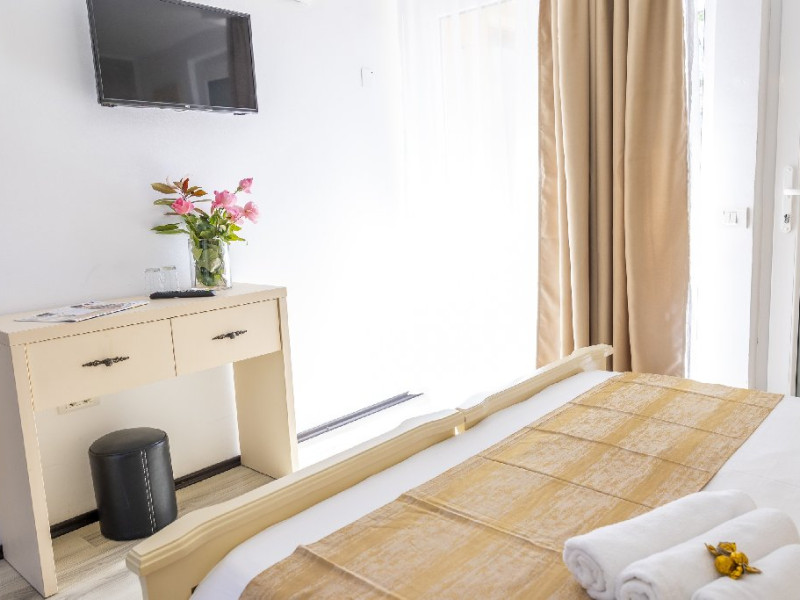 - 09:00 a 18:00: Sezlonguri gratuite (2 sezlonguri/camera dubla si 3 sezlonguri/tripla sau apartament)