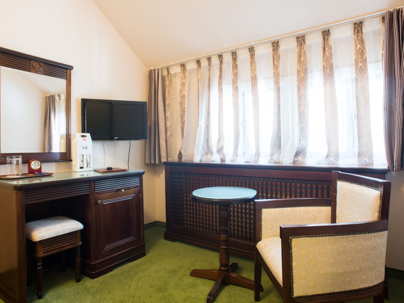 Complex La Tunuri - Vila Economat is the former Royal Guard Office of Peles Castle, located on the Royal Domain directly opposite the castle and just 328 feet from Pelisor Castle. Sinaia Monastery is 1640 feet away. It offers free WiFi in all areas. The classically furnished rooms at the Complex La Tunuri - Vila Economat feature a mini-bar, a flat-screen TV, and a private bathroom. International and traditional Romanian cuisine is served in the La Tunuri restaurant, where you can also have an à la carte breakfast for an extra charge. Guests can also enjoy drinks at the Regal Peles Café, which features a terrace with superb views of Pele Castle. Free private parking is available on site. The Sinaia cable car is 0.6 mi away and the Sinaia Train Station is 1.9 mi from the property.WiFi is available in all areas and is free of charge. Free private parking is available on site (reservation is not needed). Pets are not allowed. Children 1 and up are allowed. Children from 1 to 6 years old stay for free when using an existing bed. Children from 7 to 11 years old stay for 50 lei per person, per night when using an existing bed. Children from 12 to 17 years old stay for 90 lei per person, per night when using an existing bed. You havent added any cribs. You havent added any extra beds. Additional fees are not calculated automatically in the total cost and will have to be paid for separately during your stay.Checkin Time: 15:00Checkout End Time: 12:00