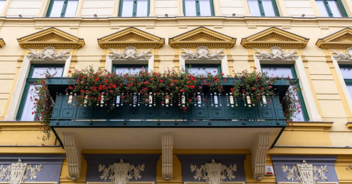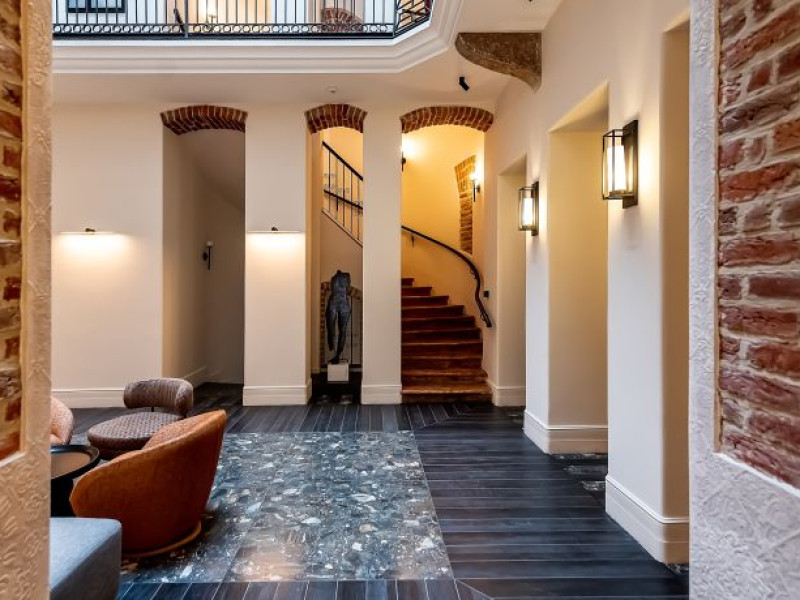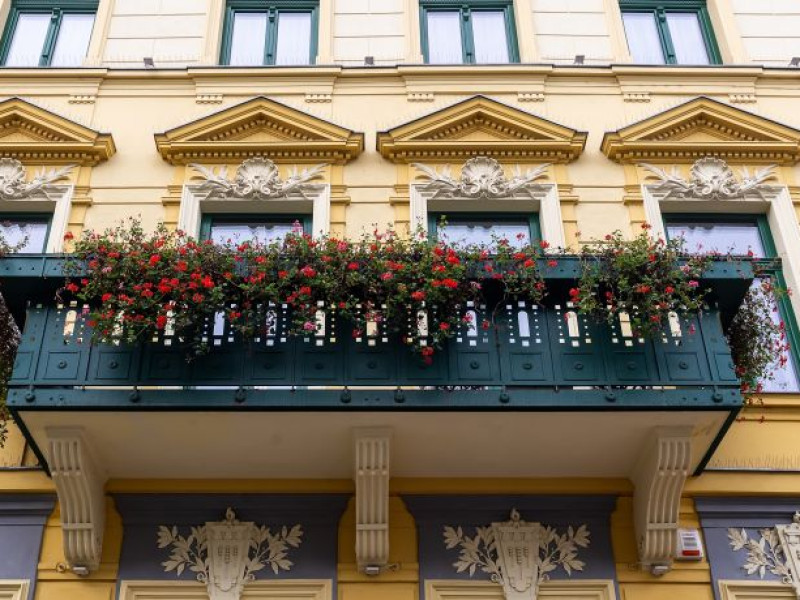 Proprietatea pastreaza farmecul secolelor trecute: fatada in stil Secession cu elemente clasiciste si neobaroc, bosajele elegante si usa originala din lemn masiv â martora a peste 120 de ani de istorie â au fost restaurate cu grija.