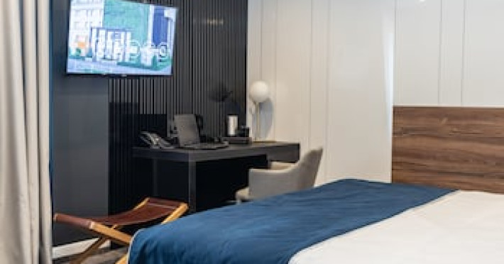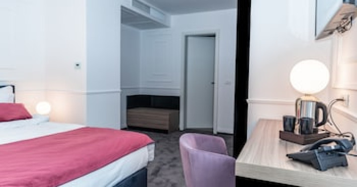 Bine poziÈionat, la doar cinci minute de centrul oraÈului, fie cÄ sunteÈi un cÄlÄtor grÄbit, aflat între douÄ zboruri, fie cÄ sunteÈi într-o cÄlÄtorie de afaceri sau aÈi sosit în TimiÈoara special pentru a o vizita, Del Corso poate face parte din âaventuraâ dumneavoastrÄ, poate fi casa dumneavoastrÄ departe de casÄ, locul în care vÄ face plÄcere sÄ reveniÈi Èi sÄ vÄ odihniÈi. Hotelul de 4 stele, este o clÄdire frumoasÄ, construitÄ Ã®n stilul modern contemporan, dispune de 39 de camere de odihnÄ luminoase Èi aerisite, dotate cu mobilier frumos Èi confortabil, corpuri de iluminat Èi textile speciale, cu aer condiÈionat, televizoare de ultimÄ generaÈie, internet de mare vitezÄ, baie cu incalzire in pardosealÄ, gresie Èi obiecte sanitare de înaltÄ calitate, întregul ambient cu un farmec aparte fiind completat de serviciile profesioniste ce creeazÄ o armonie deplinÄ. This charming hotel is located in TimiÅoara. The accommodation was built in 2019 and is situated on a main thoroughfare aproximately 1.5 km from TimiÈoara Orthodox Cathedral and also 1.9 km from Iulius Mall TimiÅoara. Hotel Del Corso has a number of amenities including a fitness centre, a bar and a shared lounge. Among the facilities of this property are a restaurant, a 24-hour front desk and free parking space, along with free WiFi. The property is non-smoking, smoking is allowed only outside the building or at the 4th floor terrace. All guest rooms come with air conditioning, a flat-screen TV with cable channels, a kettle, a shower, a hairdryer and a desk. At the hotel all rooms have a wardrobe and a private bathroom. Guests at Hotel Del Corso can enjoy a buffet breakfast.The accommodation offers a range of wellness facilities including a hot tub and a sauna.