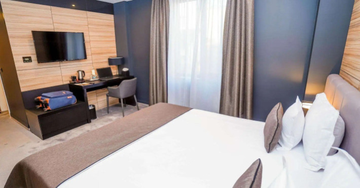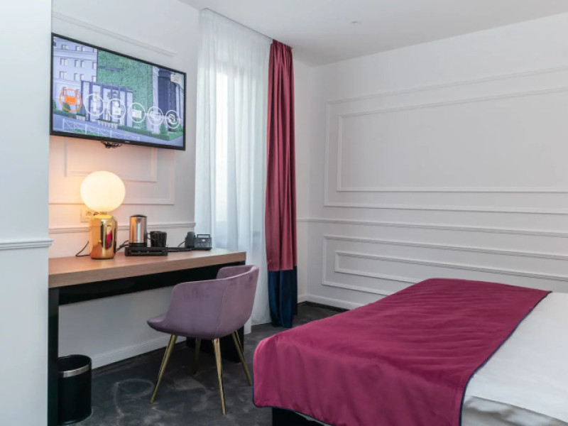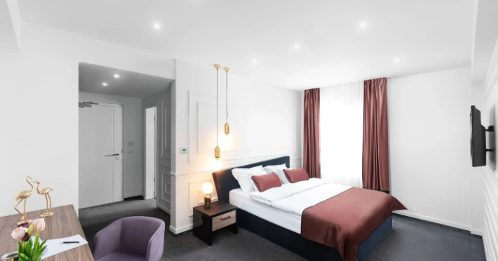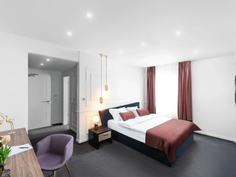 Good choice if youre looking forward to taking some rest at the hotel as much as to walking around the city. Hotel Del Corso Hotel is located in Timisoara. This hotel is located minutes away from the city center.Good choice if youre looking forward to taking some rest at the hotel as much as to walking around the city. Hotel Del Corso Hotel is located in Timisoara. This hotel is located minutes away from the city center.Spend an evening in a nice atmosphere of the bar. Taste the local cuisine and have a rest in the restaurant. Free Wi-Fi is available on the territory. Ask for more information when checking in. Specially for tourists who travel by car, theres a free parking zone.Also, the following services are available for guests at the hotel: a sauna and a spa center. Guests who love doing sports will be able to enjoy a fitness center and a gym. For business meetings, there is a conference hall and meeting and presentation facilities. If you want to make your journey even more comfortable, you can order a transfer.Accessible for guests with disabilities: the elevator helps them to go to the highest floors. There are other services available for the guests of the hotel. For example, a laundry, dry cleaning, ironing, press, a safe-deposit box and a concierge.Spend an evening in a nice atmosphere of the bar. Taste the local cuisine and have a rest in the restaurant. Free Wi-Fi is available on the territory. Ask for more information when checking in. Specially for tourists who travel by car, theres a free parking zone.Also, the following services are available for guests at the hotel: a sauna and a spa center. Guests who love doing sports will be able to enjoy a fitness center and a gym. For business meetings, there is a conference hall and meeting and presentation facilities. If you want to make your journey even more comfortable, you can order a transfer.Accessible for guests with disabilities: the elevator helps them to go to the highest floors. There are other services available for the guests of the hotel. For example, a laundry, dry cleaning, ironing, press, a safe-deposit box and a concierge.In the room, there is a TV, a mini-bar, a bathrobe and slippers. Please note that the listed services may not be available in all the rooms.In the room, there is a TV, a mini-bar, a bathrobe and slippers. Please note that the listed services may not be available in all the rooms..7 0 available 0.RON airport not included 275 one way