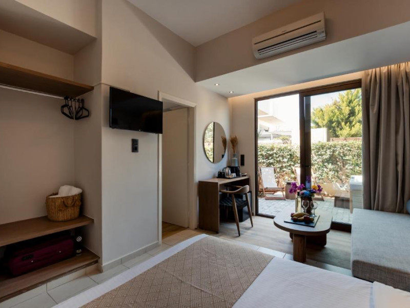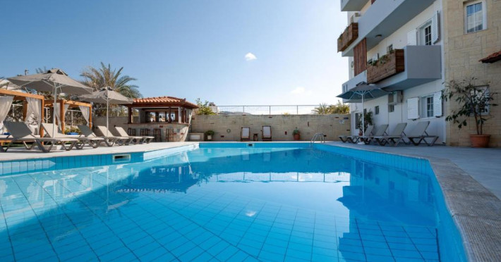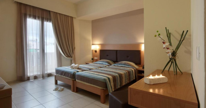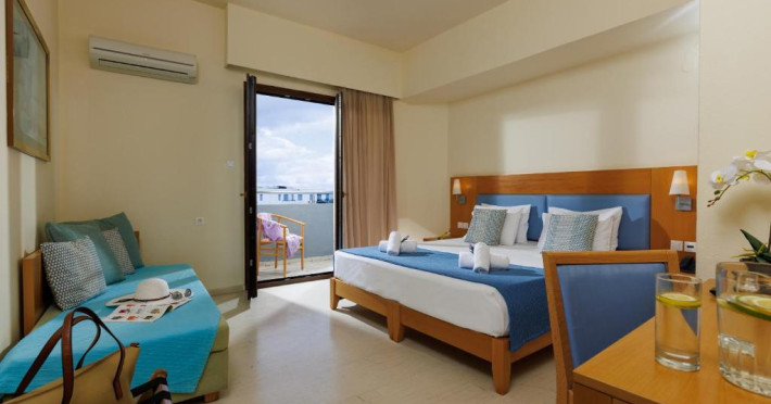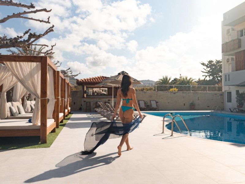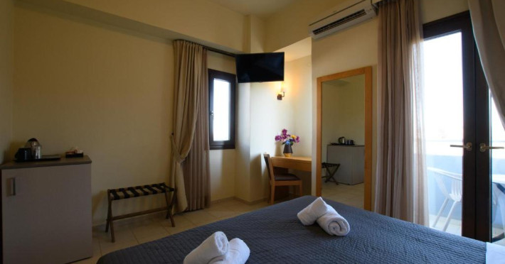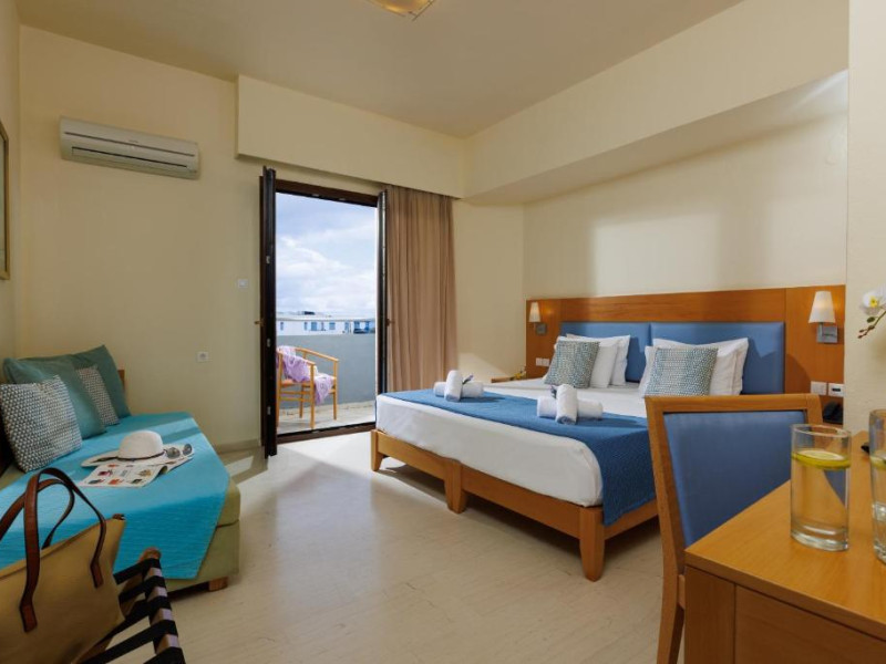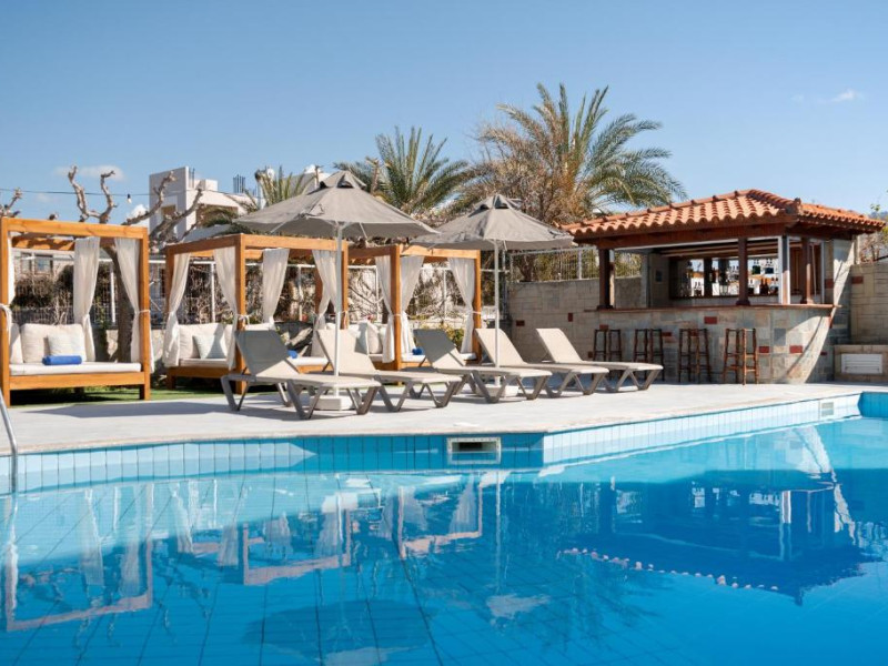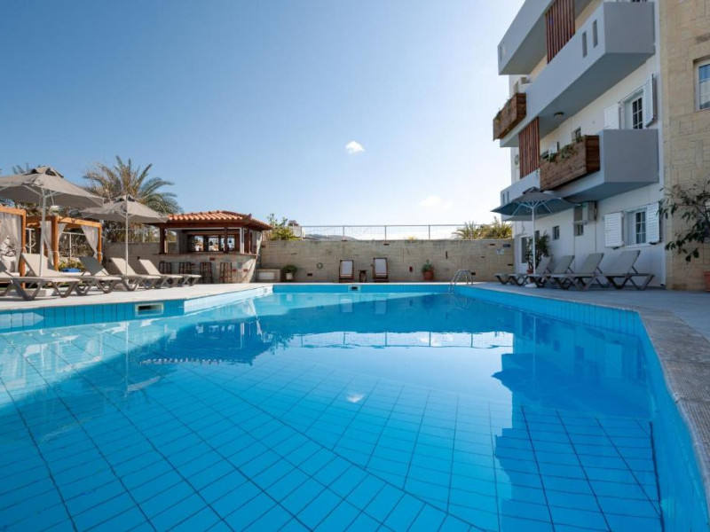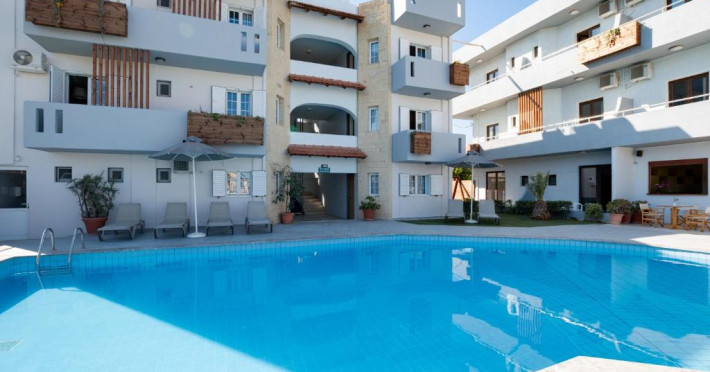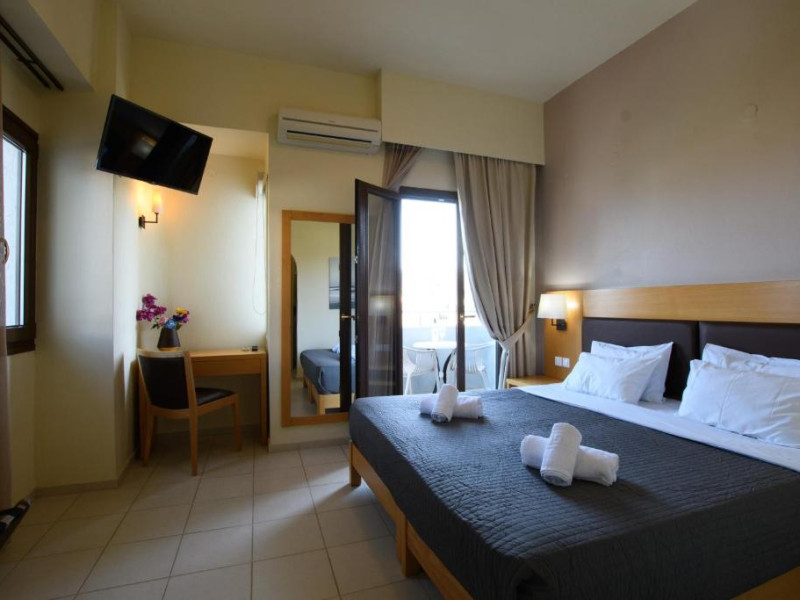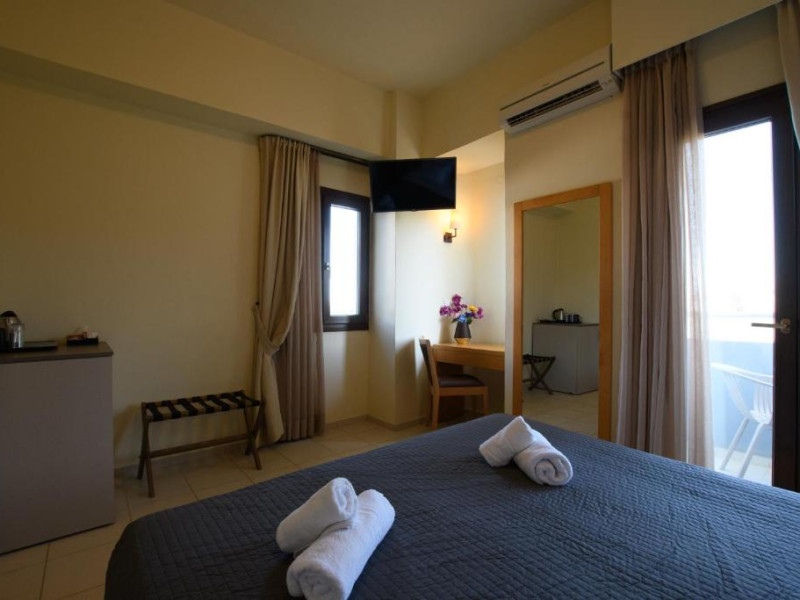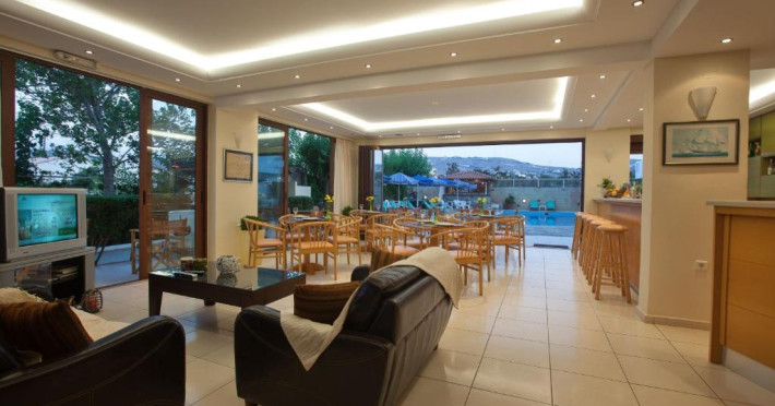 Micul dejun continental este servit zilnic. Oaspeții pot savura băuturi răcoritoare și cafea la barul hotelului, iar restaurante care servesc preparate cretane se găsesc la 50 de metri.