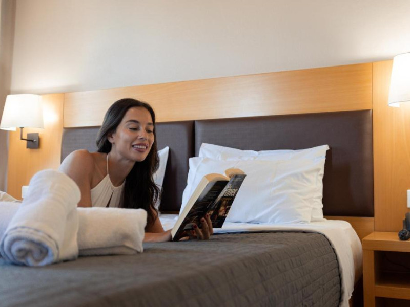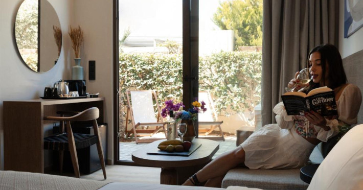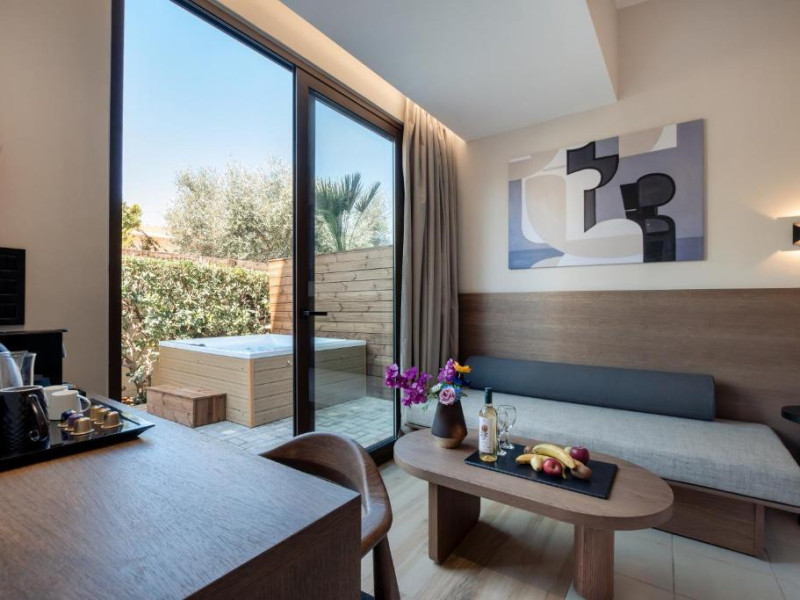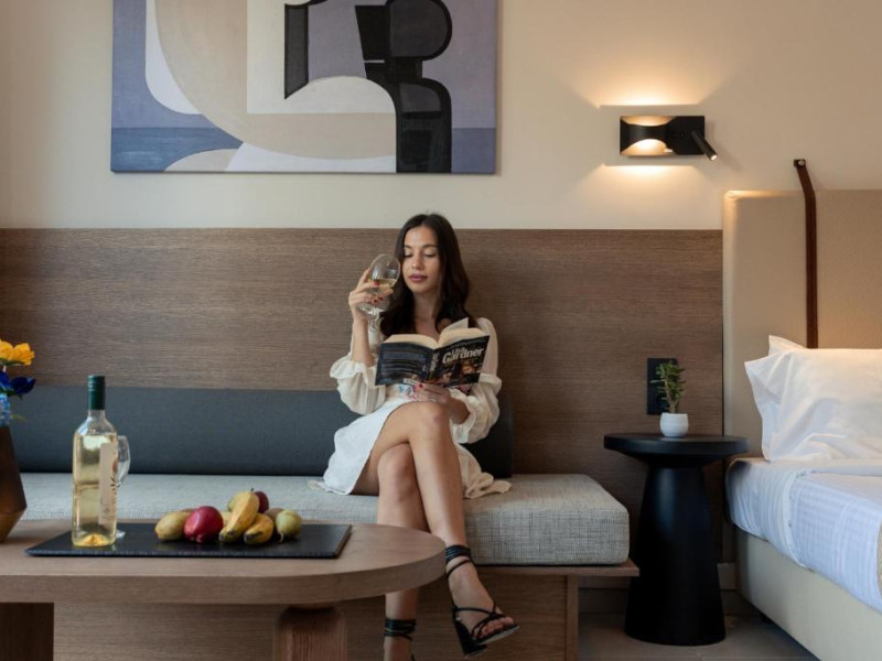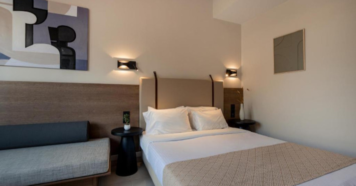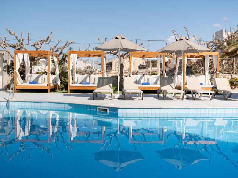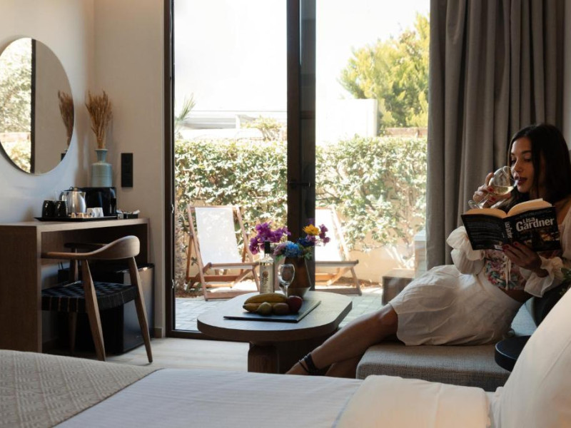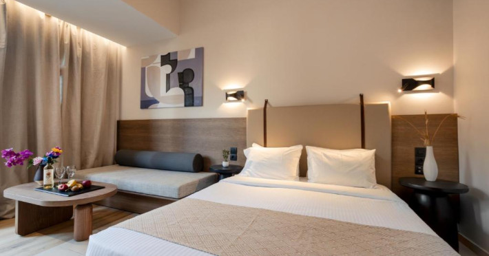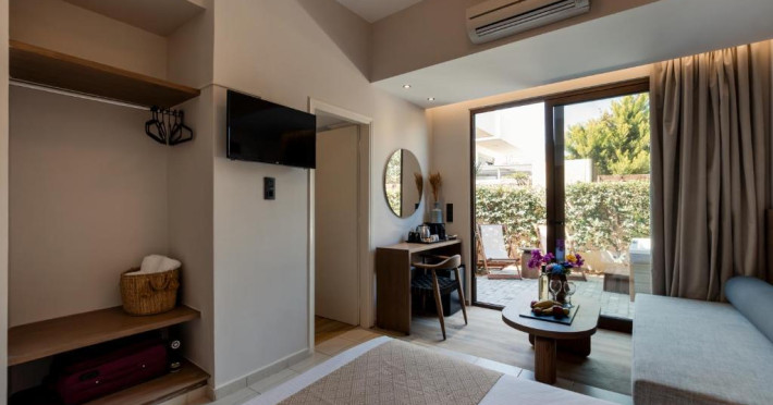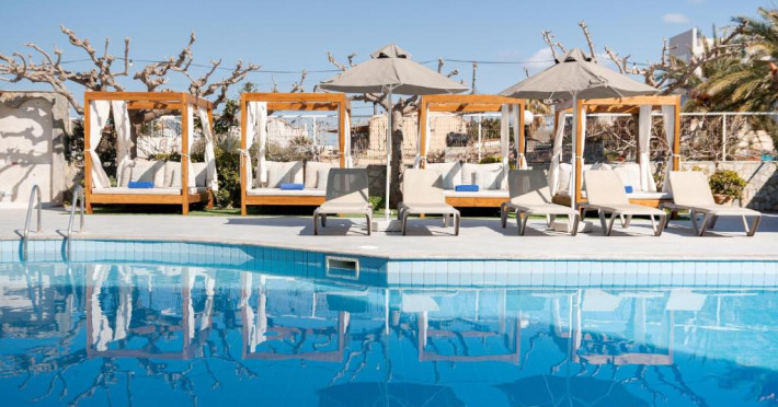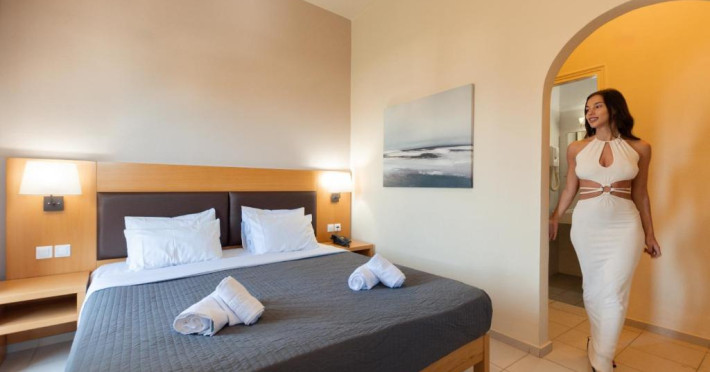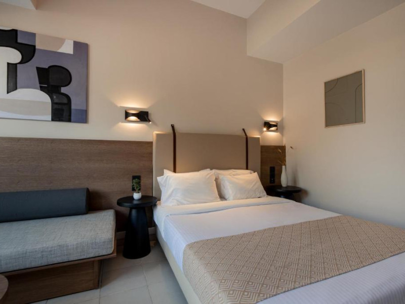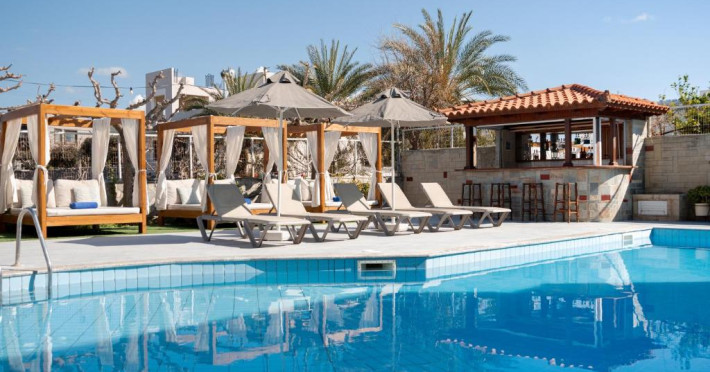 Micul dejun continental este servit zilnic. Oaspeții pot savura băuturi răcoritoare și cafea la barul hotelului, iar restaurante care servesc preparate cretane se găsesc la 50 de metri.