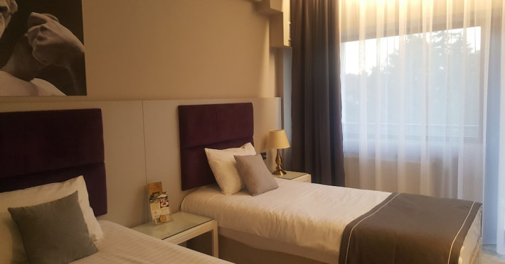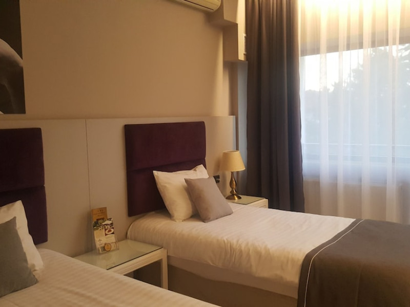 Hotel Dumbrava is located in the center of Bacau and provides accommodations with air conditioning, a restaurant with international cuisine, a relaxation area and a summer garden. WiFi and private parking are free of charge. Each of the stylish units is equipped with flat-screen TV, a mini-bar and a private bathroom with free toiletries and a hairdryer. Guests can relax in the sauna or enjoy a massage upon an additional cost, while access to a fitness room is complimentary for guests. BacÄu Train Station is reachable within 10 minutesâ walking from the property and BacÄu International Airport is 3.1 mi away. Upon request, shuttle transfers to the airport can be arranged.WiFi is available in public areas and is free of charge. Free public parking is available on site (reservation is not needed). Pets are allowed on request. Charges may apply. Children of all ages are allowed. Children 2 and under stay for free when using an available crib. You havent added any extra beds. Any type of extra bed or crib is upon request and needs to be confirmed by management.Checkin Time: 14:00Checkout End Time: 12:00