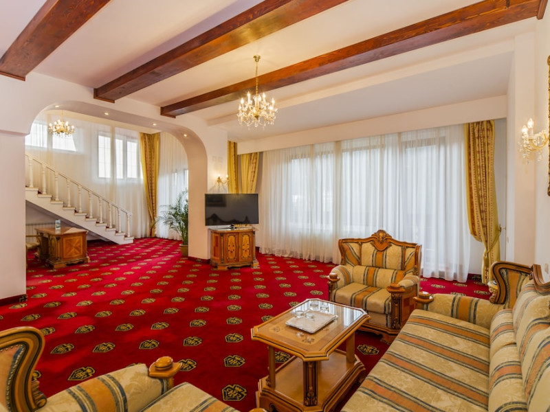 Picturesquely located on the shore of Miorita Lake, in the mountain resort Poiana Brasov, the 4-star Aurelius Imparatul Romanilor hotel offers stylish accommodations. Free WiFi is offered. The well-appointed rooms are very spacious and bright. They are decorated with luxurious, classic furniture and with attention to details. Guests are offered free access to an array of facilities, including the indoor swimming pool, the sauna, the hot tub and the fitness area. During the winter season, the property offers ski storage during your stay. For your relaxation, massages are available for a surcharge. The restaurant is directly located at the lakefront, serving international or local dishes for up to 170 guests. It can also be used for conferences, shows or any other kind of events. The Old Town of BraÈov is at 3.7 mi from Aurelius Imparatul Romanilor hotel. The nearest airport is in Otopeni, 91 mi away, and airport transfers can be arranged for a surcharge. Free private parking is available on site.WiFi is available in all areas and is free of charge. Free private parking is available on site (reservation is not needed). Pets are not allowed. Children of all ages are allowed. Children 2 and under stay for free when using an available crib. People 2 and up stay for 150Â lei per person, per night when using an available extra bed. Any type of extra bed or crib is upon request and needs to be confirmed by management. Additional fees are not calculated automatically in the total cost and will have to be paid for separately during your stay.Checkin Time: 15:00Checkout End Time: 12:00Hotel important information: In response to the coronavirus (COVID-19), additional safety and sanitation measures are in effect at this property. Fitness center is closed from Mon, Nov 20, 2023 until Mon, Dec 18, 2023