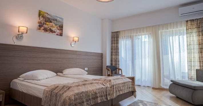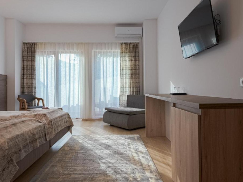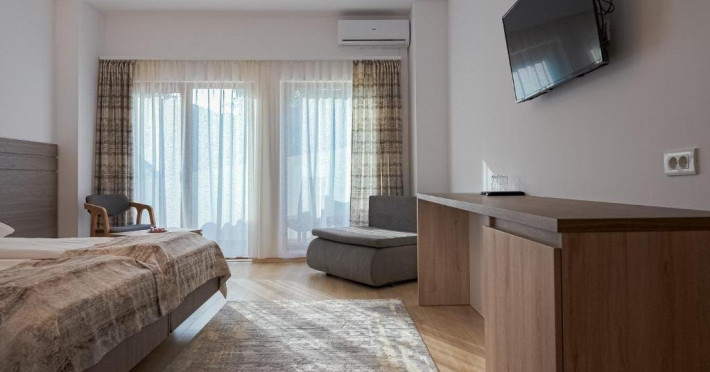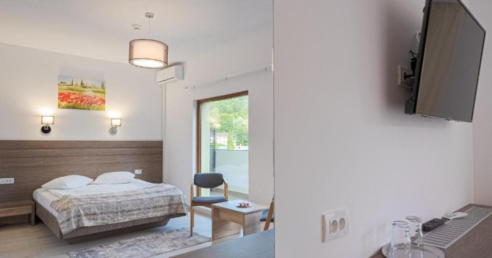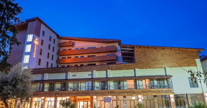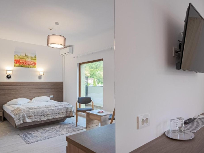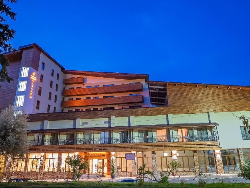 Situat in centrulstatiunii Baile Olanesti, pe malul drept al raului Olanesti. Hotelul dispune de 70 spatii de cazare, restaurant, terasa, spatiu de joacapentru copii, tenis de masa, billiard, zona SPA, parcare gratuita in limita locurilordisponibile Pe durata sejurului, turistii beneficiaza de acces gratuit in zona de SPA,dotata cu piscina, jacuzzi, piscina copii, sauna umeda, sauna uscata, dus emotional, sala fitness Turistii pot face tratament contra cost la baza de tratament a hotelului Stogu,situata la 100 m distanta, unitate ce apartine de aceeasi societatecomerciala. Toate camerele sunt dotate cu aerconditionat, balcon, TV, internet, racitor, produse de igiena, halat de baie sipapuci. Camera dubla matrimoniala- dotatacu pat matrimonial, fara posibilitate de pat suplimentar. Camera dubla Twin Superioara- dotatacu paturi twin si un fotoliu extensibil;se poate adauga pat suplimentar Camera twin Family - camerespeciale pentru familii cu 2 copii, dispun de canapea extensibila( pentru 2 pers)si au o suprafata mai mare; se poate adauga pat suplimentar. Apartament-,dispun de dormitor cupaturi twin si living cu canapea extensibila, separate prin usa, un singur ACsi o singura baie. Restaurantpropriu. Masa este sub forma de fisa cont. Valoarea mesei poate fi suplimentata, la cererea turistilor.INFORMATII GENERALE Hotel Cascada este cel mai nou hotel deschis in Baile Olanesti, fiind situat la intrarea in statiune, in apropiere de parcul central. DESCRIERE UNITATE DE CAZARE Facilitatile de care dispune hotelul in prezent sunt: parcare, restaurant cu terasa si bar. In viitorul apropiat se va deschide si un centru SPA (piscina interioara/exterioara si alte facilitati de relaxare). Tratamentul se asigura la baza de tratament a Hotelului Stogu, aflat la 100 m de Hotel Cascada, cu urmatoarele servicii: - curenti diadinamici; - curenti interferentiali; - curenti galvanizati; - magnetodiaflux; - ionizari; - ultrasunete; - unde scurte; - solux; - trabert; - impachetari calde; - masaj. Pentru a beneficia de ofertele de tratament sunt necesare biletul de trimitere de la medicul de familie si cardul de sanatate.Cura de ape se poate achita la baza de tratament a Hotelului Stogu. DESCRIERE CAMERE Hotel Cascada dispune de camere duble dotate cu: frigider/racitor, TV HD prin cablu, AC, WI-FI gratuit, baie proprie, uscator de par, balcon. Apartamentele sunt formate din dormitor cu doua paturi twin si living cu canapea extensibila, baie proprie, TV, Wi-Fi. ATRACTII TURISTICE Casa memoriala Anton Pann, Manastirea Frasinei, Parcul National Buila Vanturarita, Pestera Sfantului Grigorie Decapolitul, Rezervatia Muzeul Trovantilor, Rezervatia Radita - Manzu din Muntii Capatanii. SERVICII DE MASA Masa se serveste in restaurantul propriu.